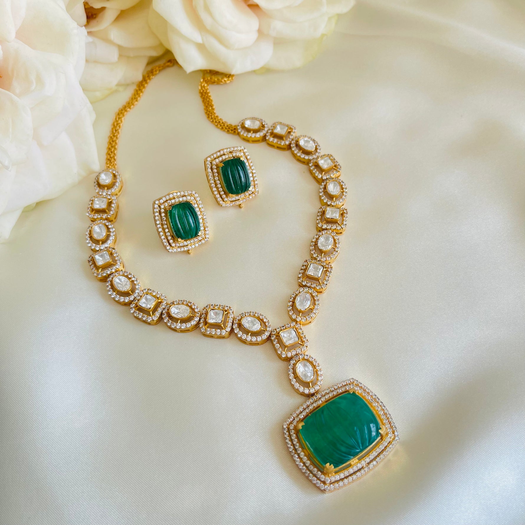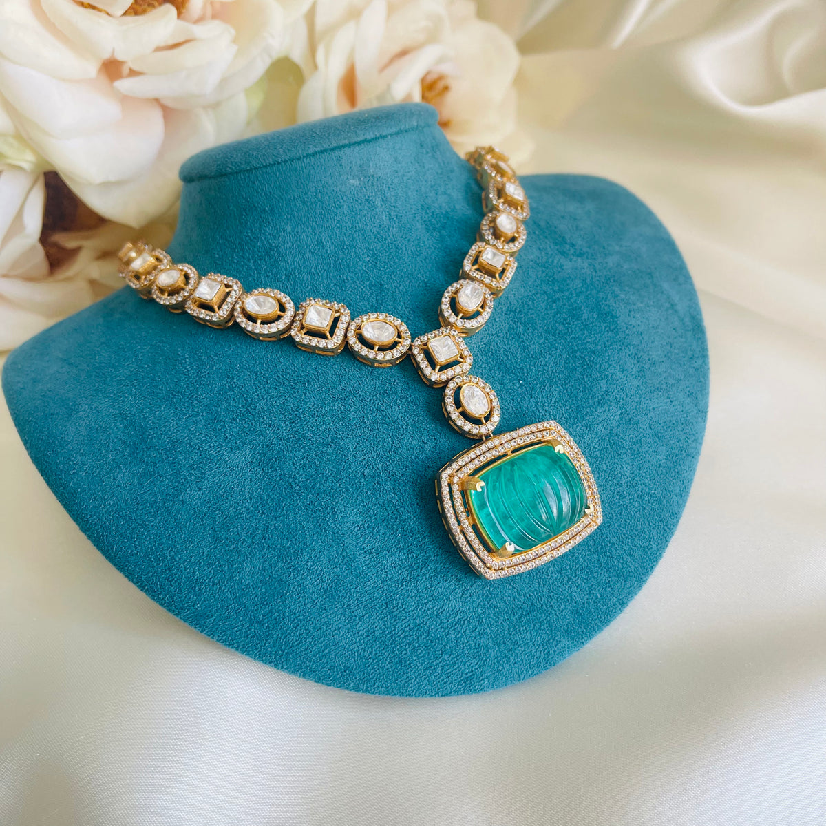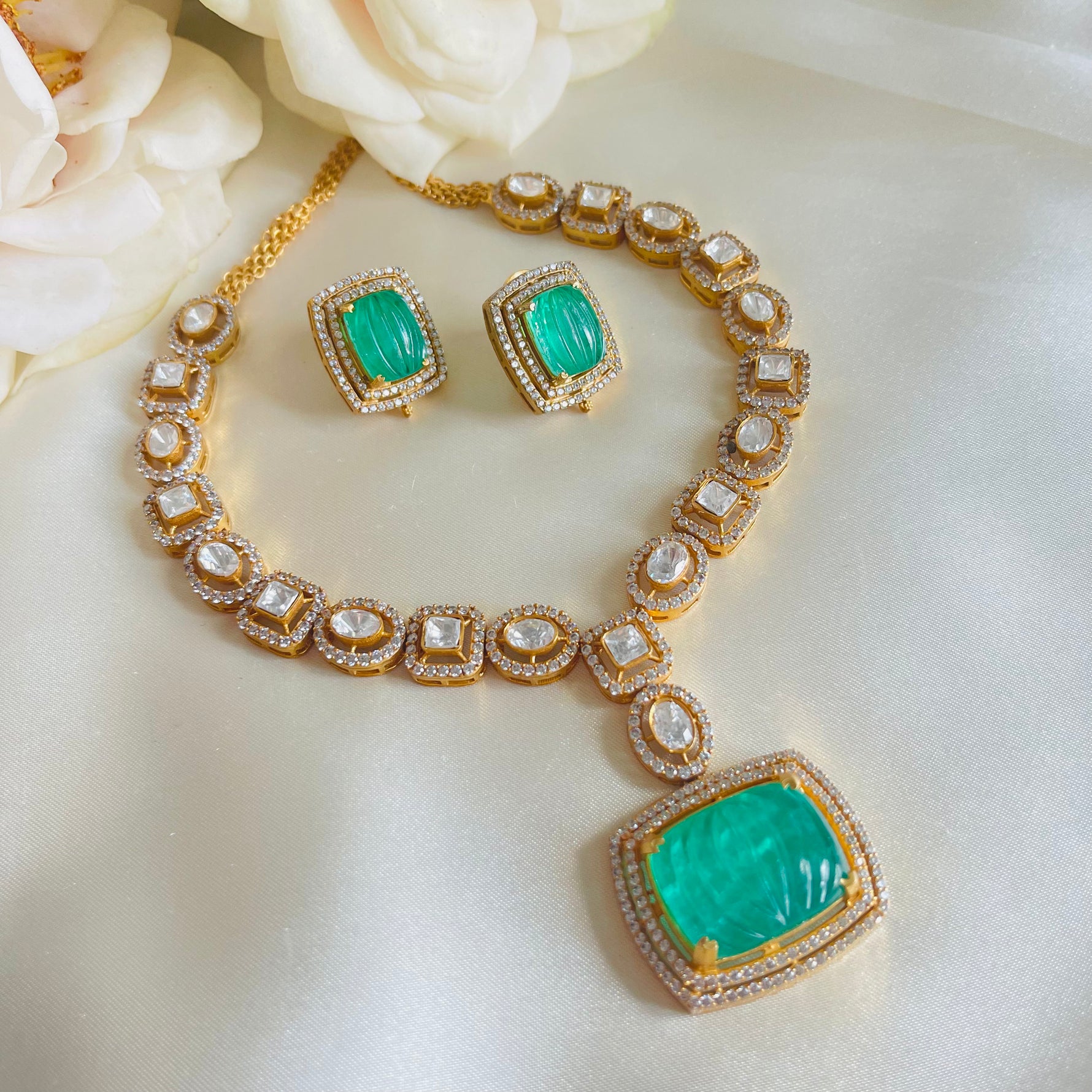 - Moissanite Polki, carved stone, american diamond and gold plated.