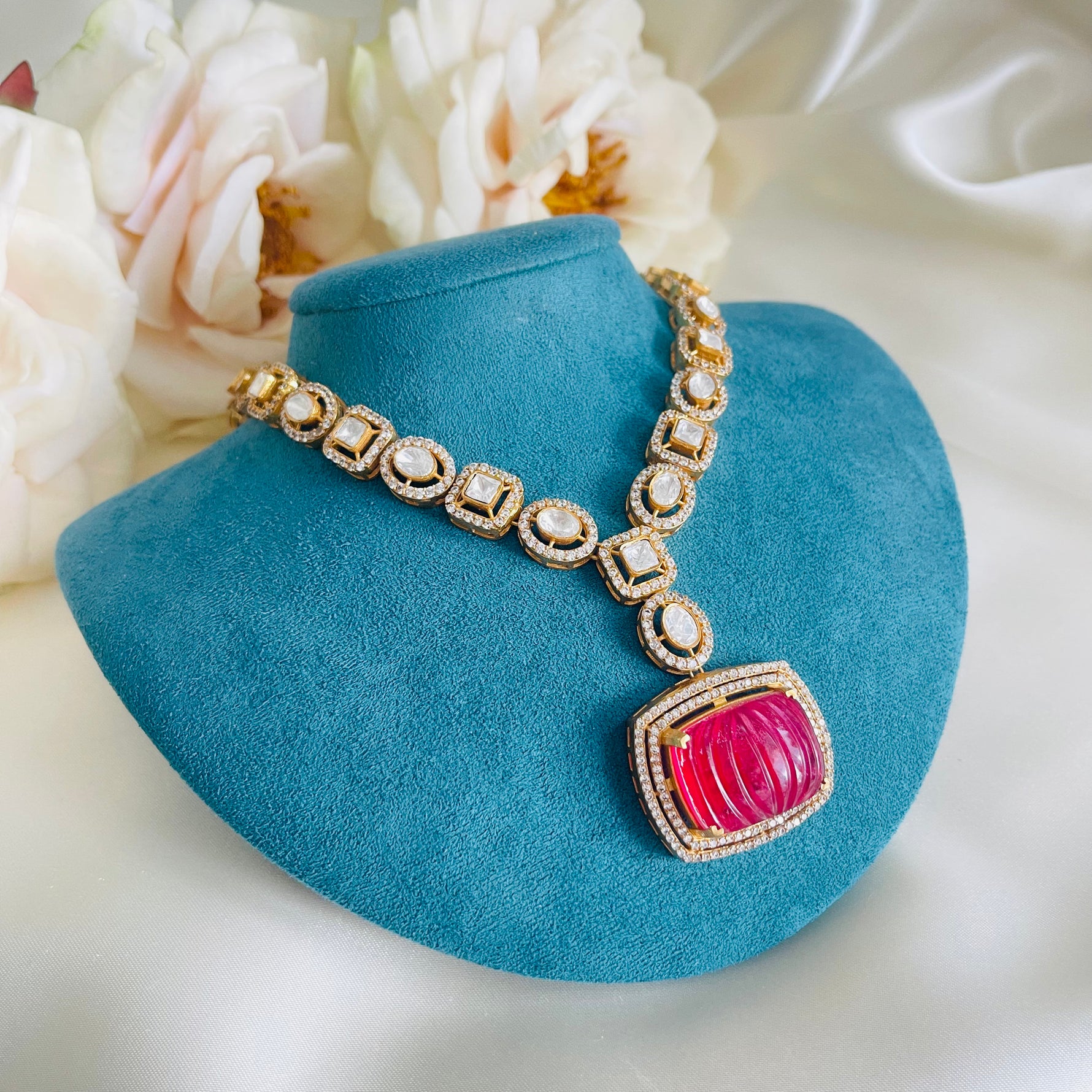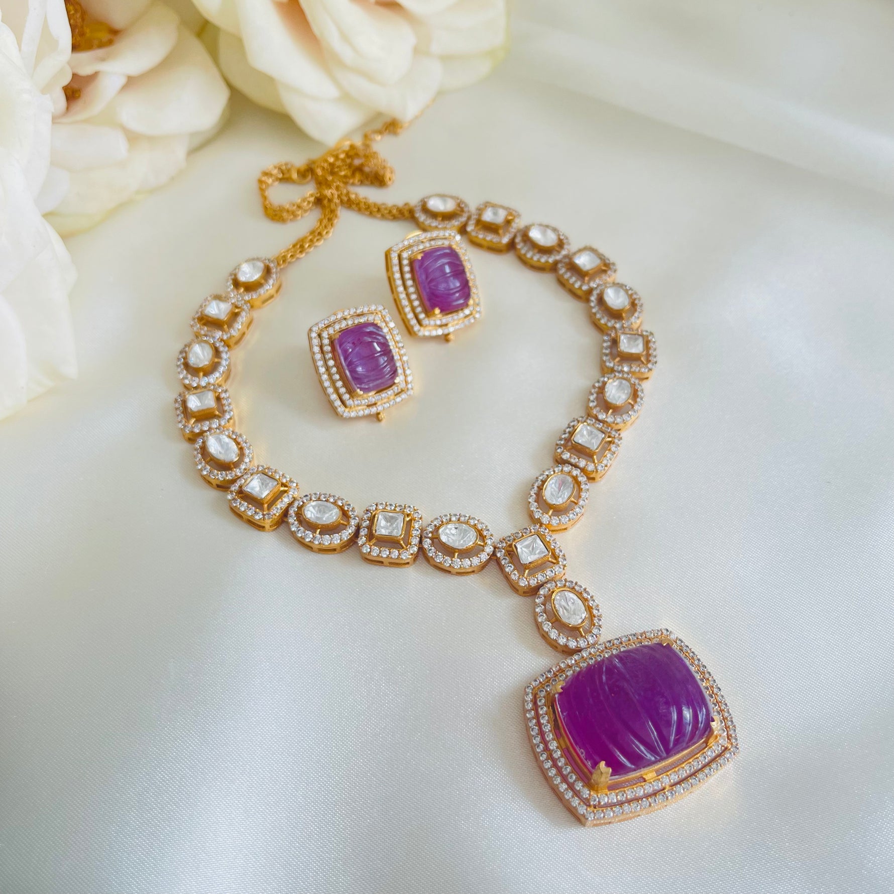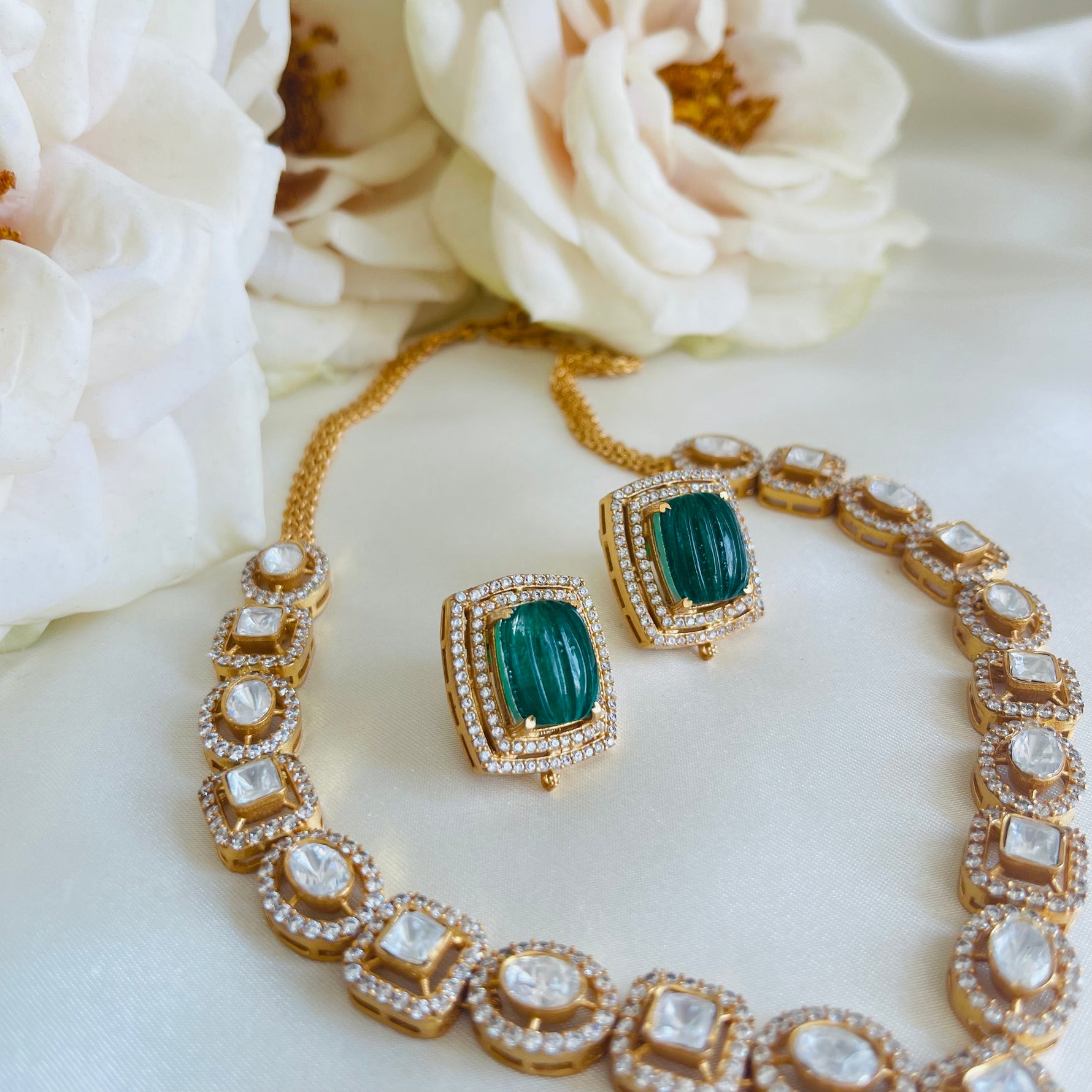 - Moissanite Polki, carved stone, american diamond and gold plated.