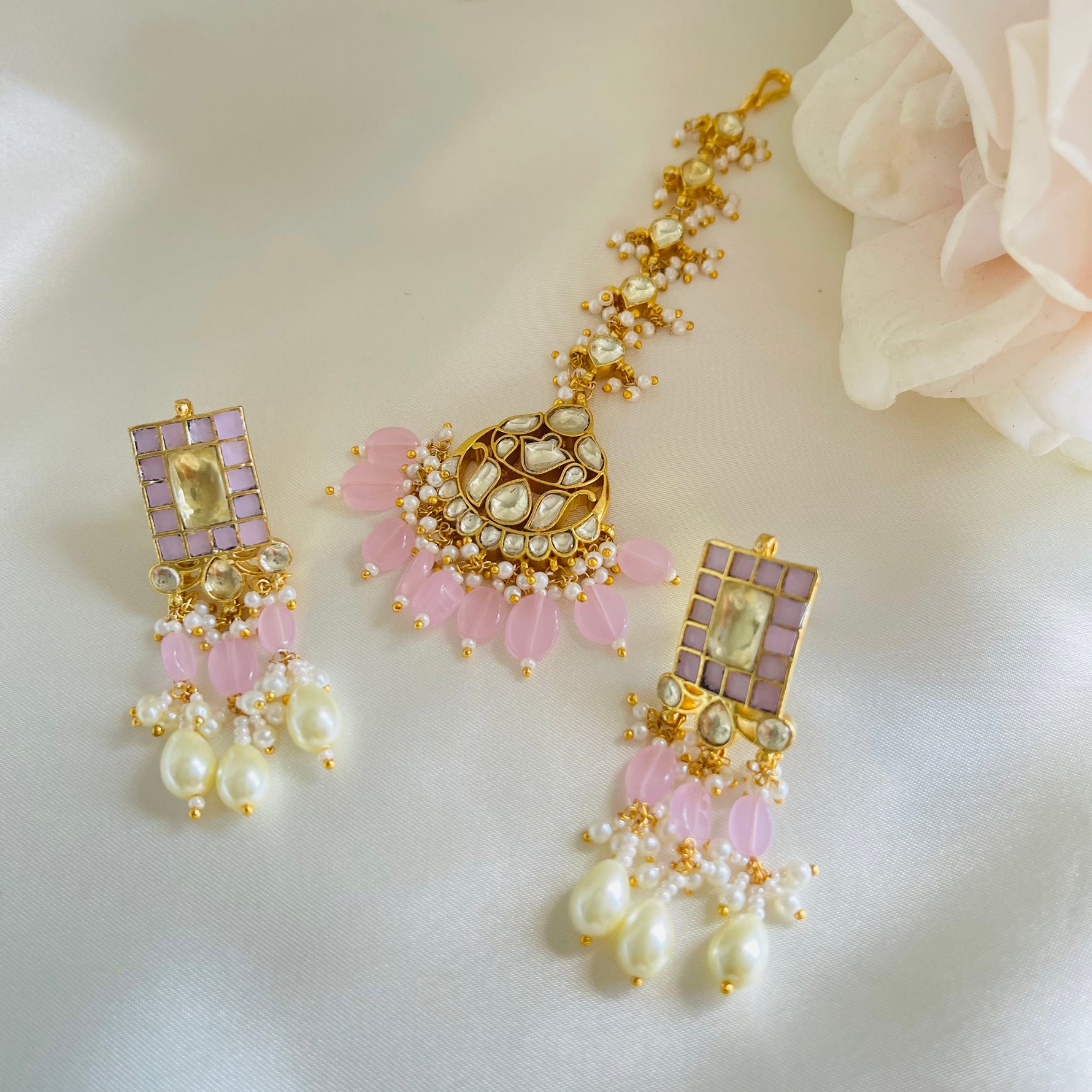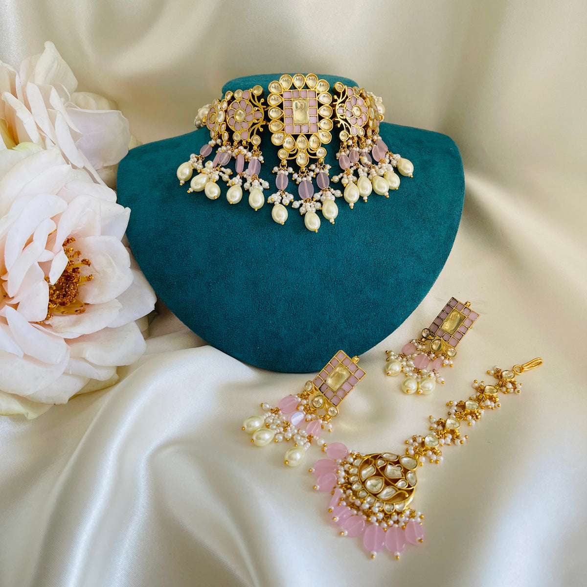 - This set includes the necklace, earrings and matching tikka (which is optional)