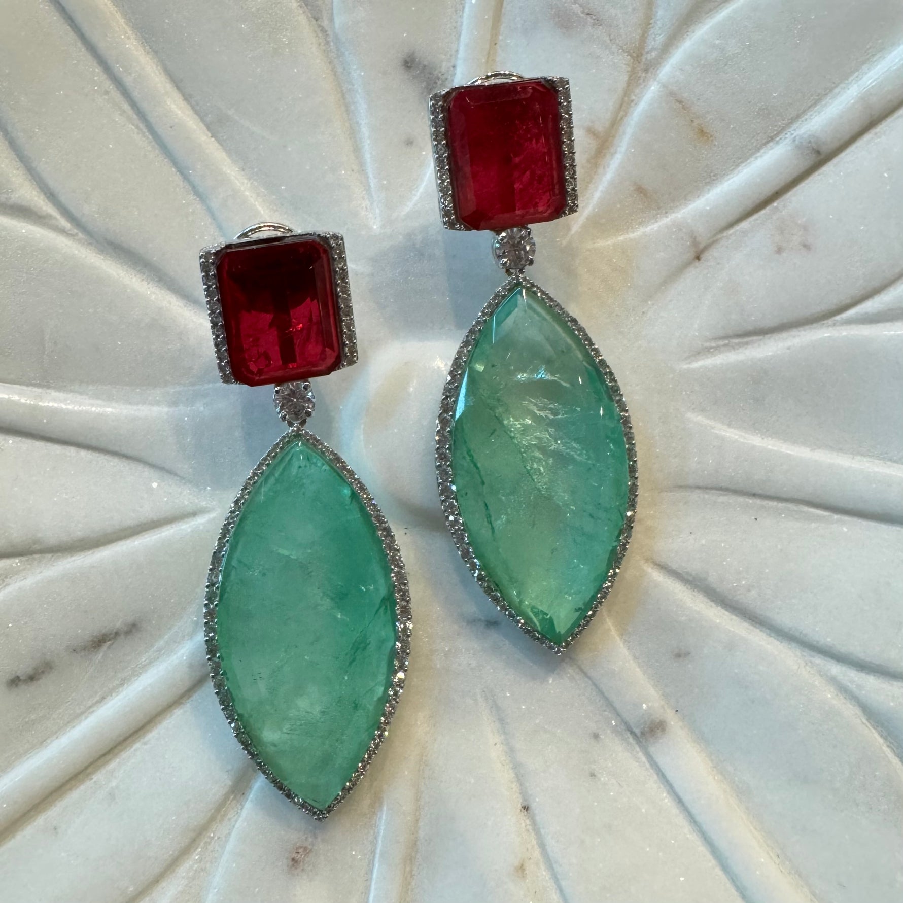 - American diamond, faux dyed doublet stones with gold plating and silver finish
