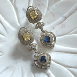 - American diamond, faux dyed doublet stones with gold plating and antique finish