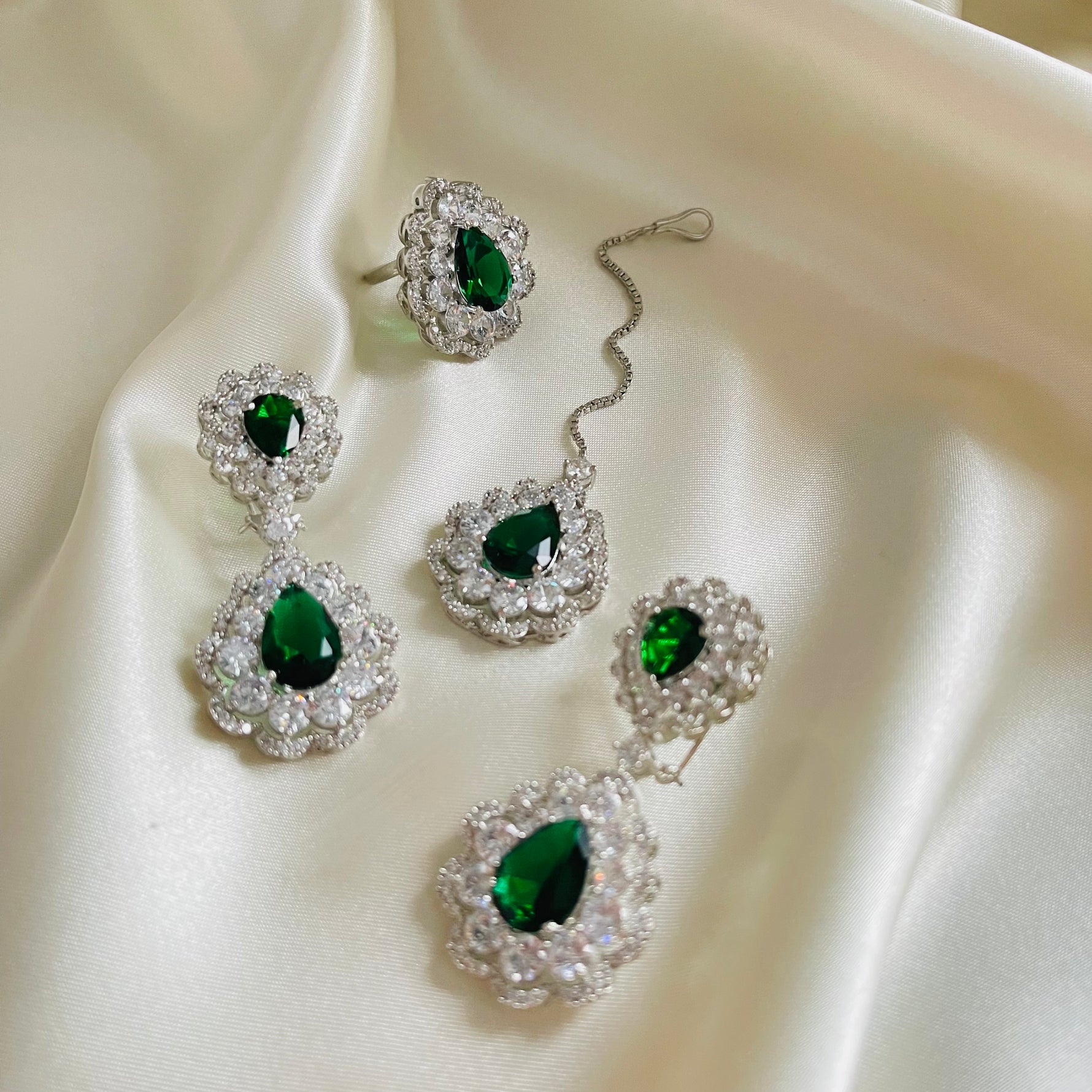 - This set includes the necklace, earrings, tikka and adjustable ring.
