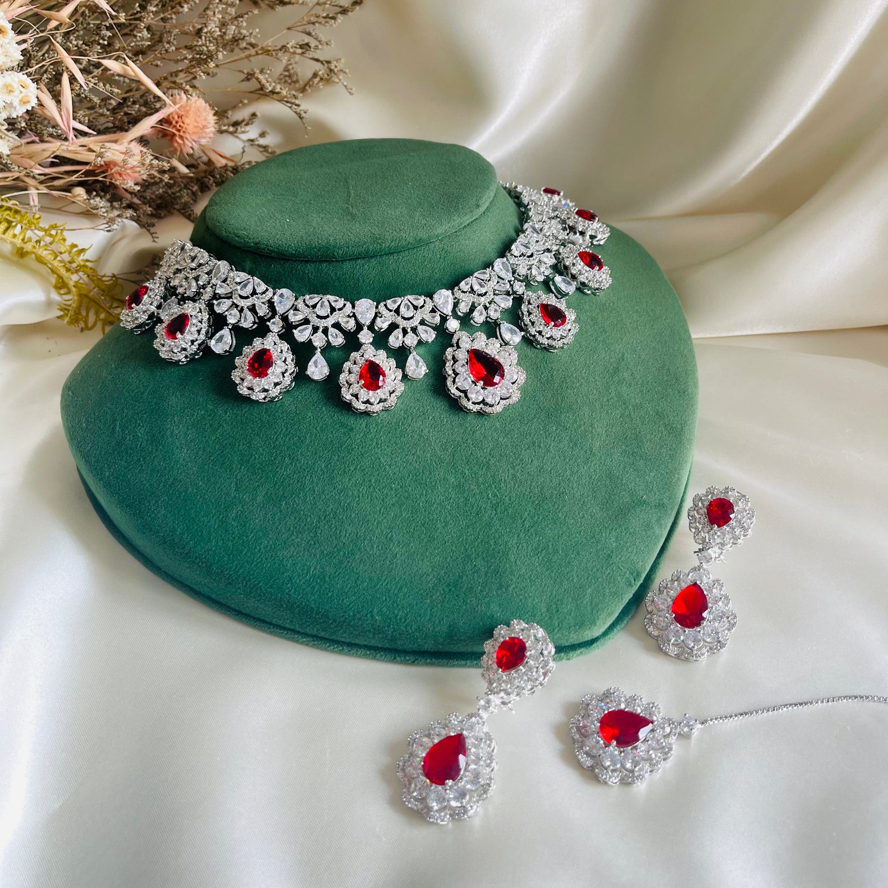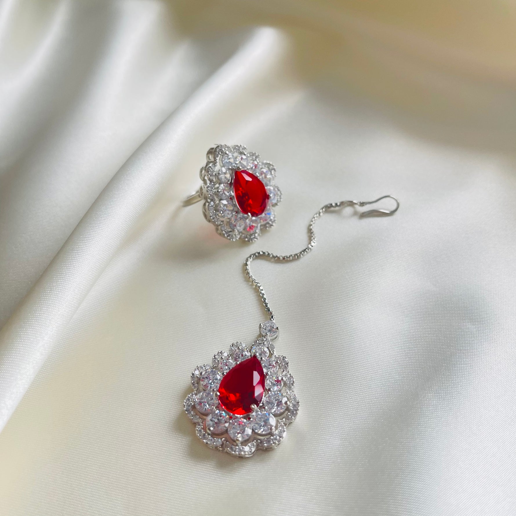 - This set includes the necklace, earrings, tikka and adjustable ring.