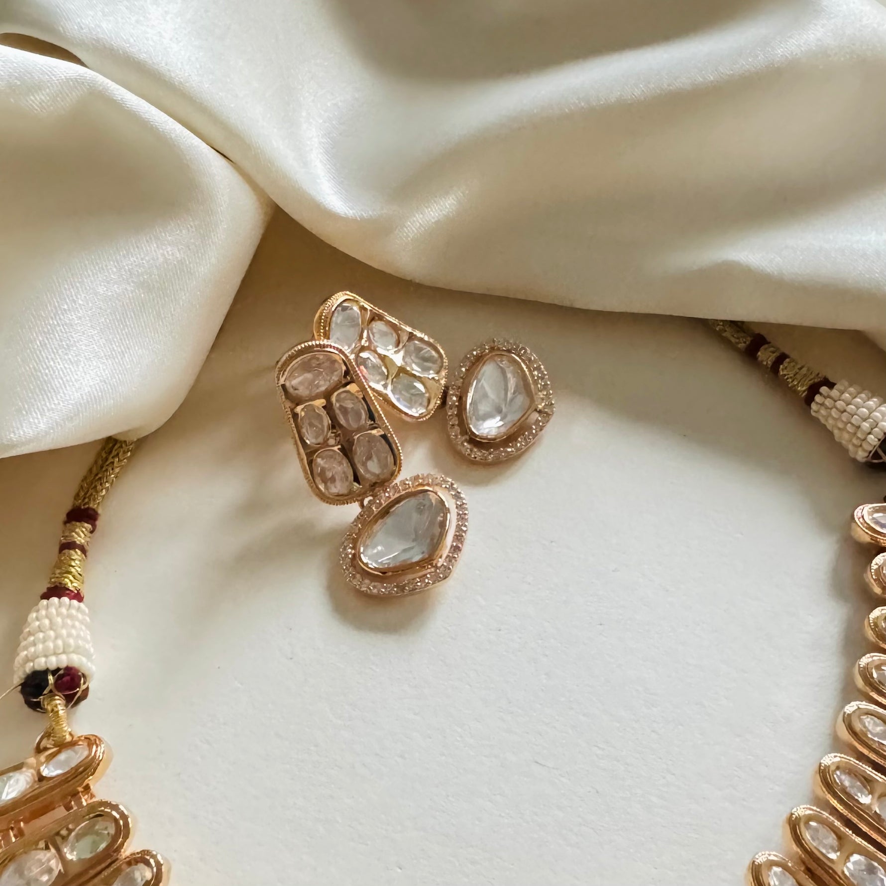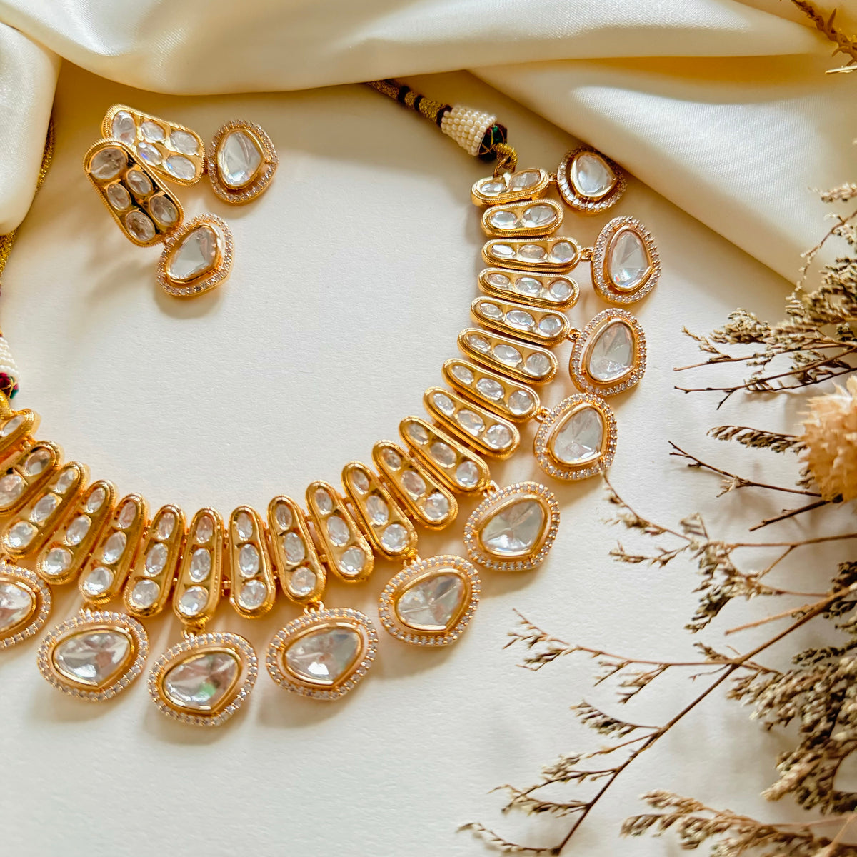 • Artificial kundan, american diamond and gold-plated.