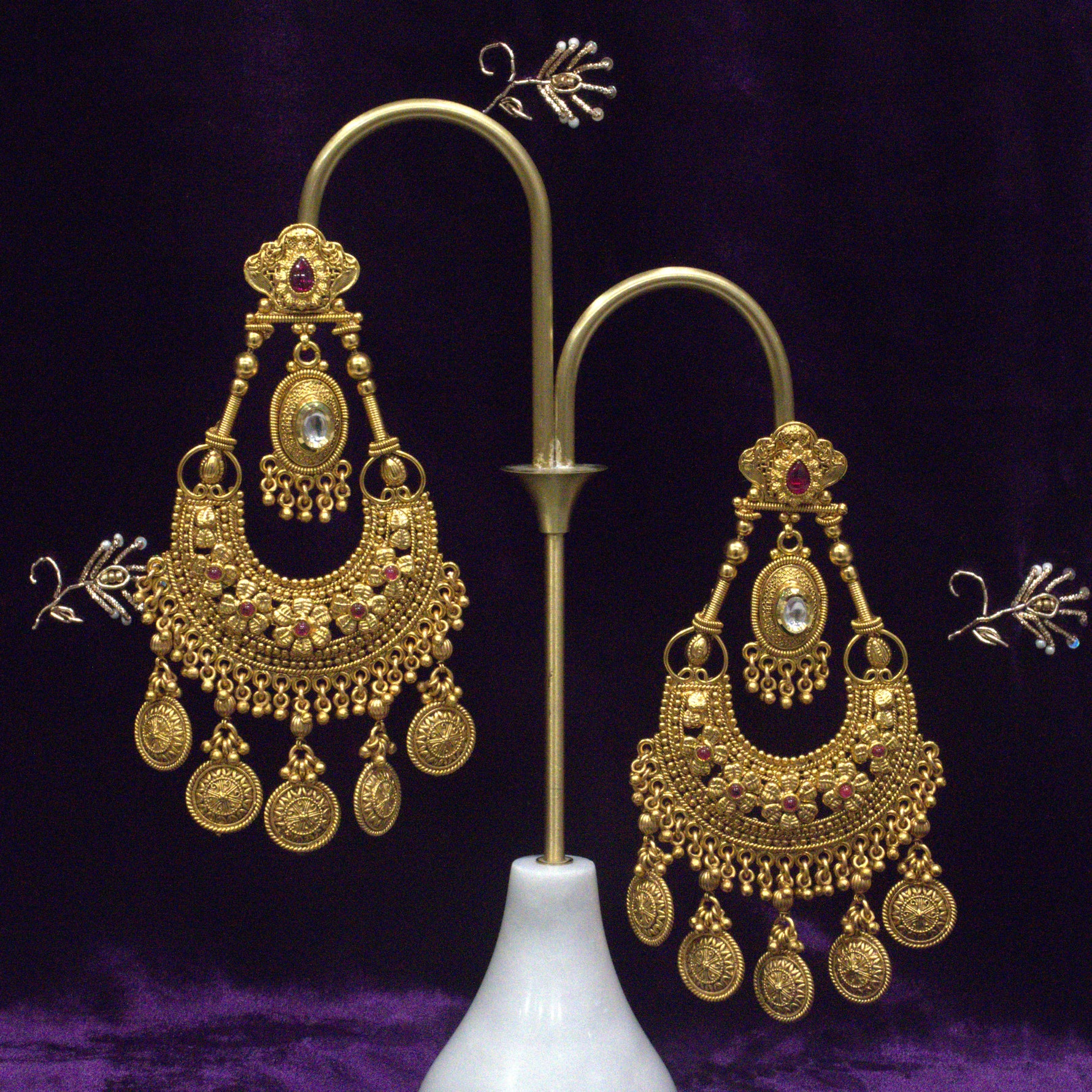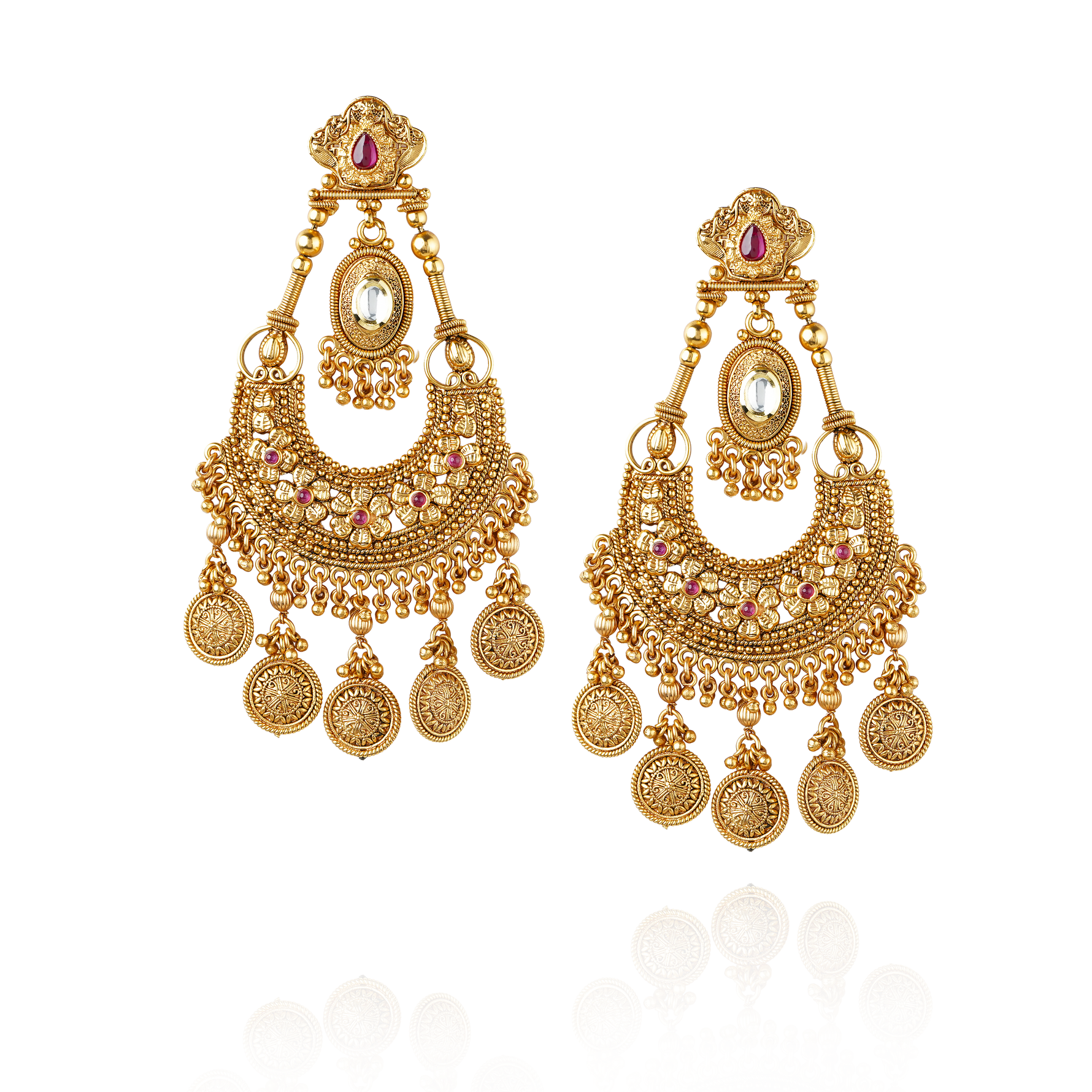 • Antique gold carving, faux kundan and gold-plated.