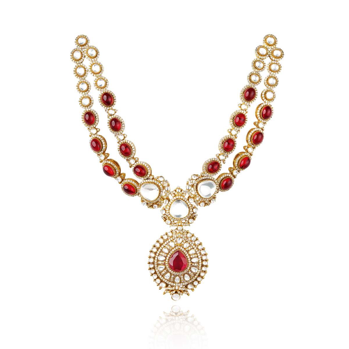 • Kundan, american diamond, faux dyed stones and gold-plated.