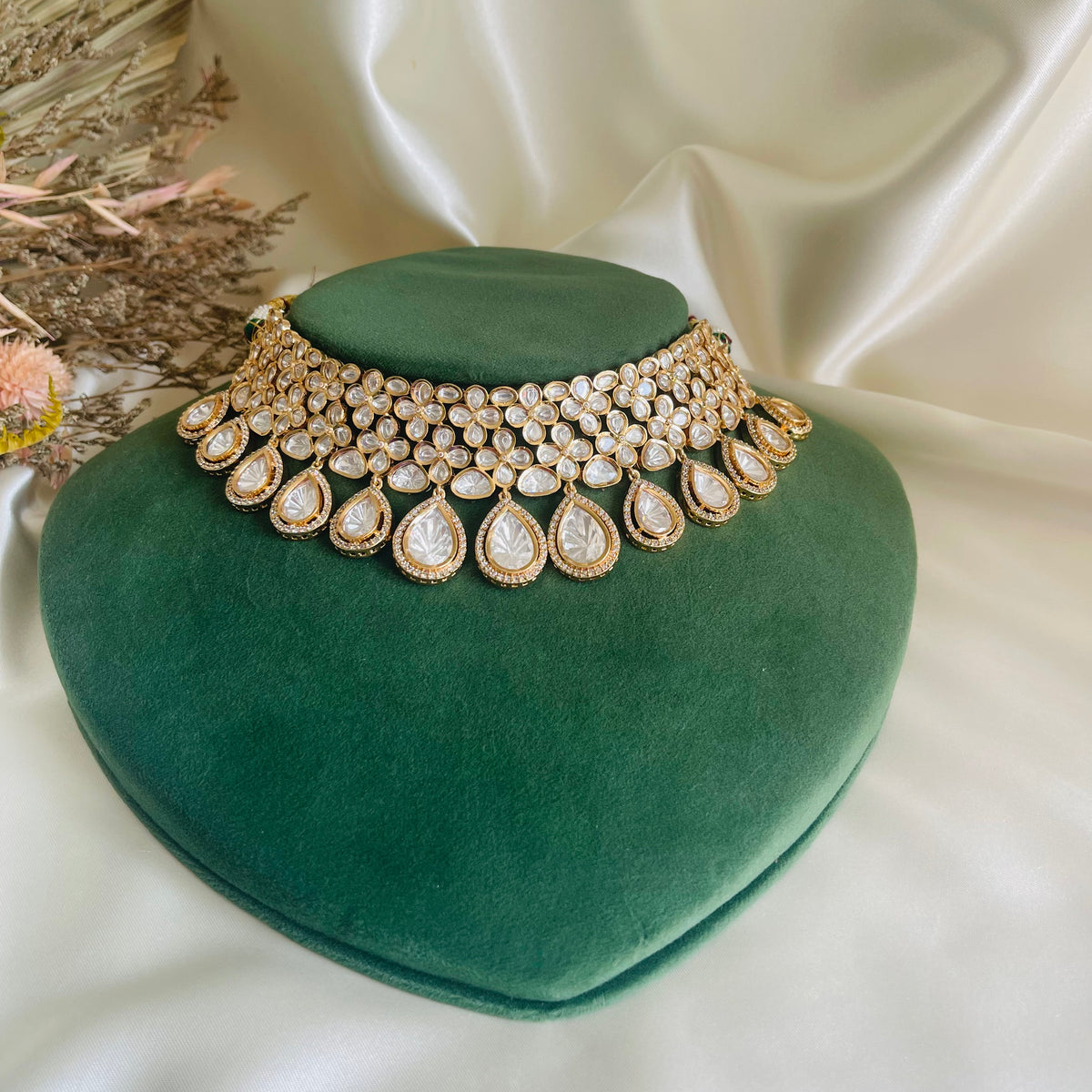 - Artificial kundan, american diamond and gold-plated.