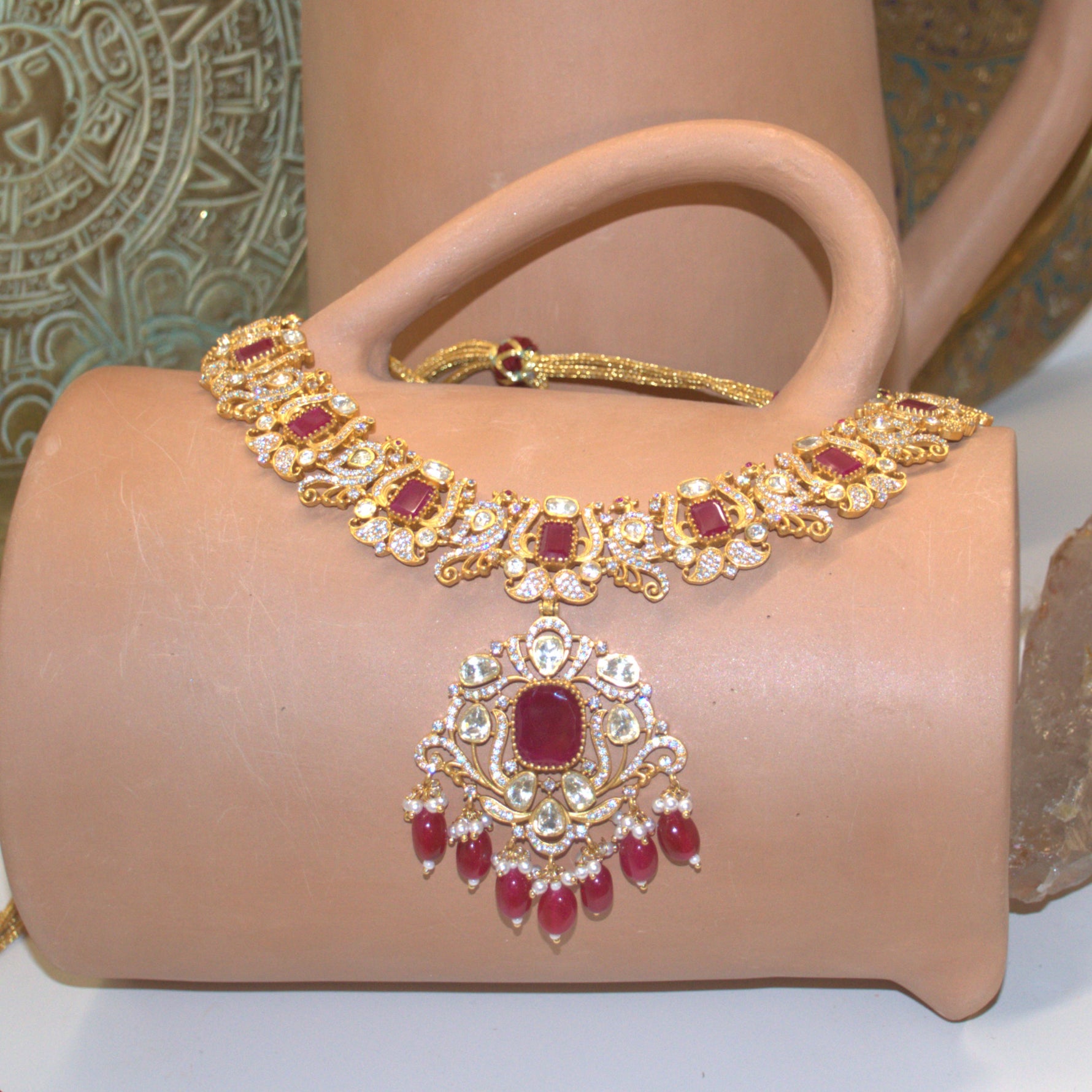 - Glass Moissanite Polki, semi precious stone, 92.5 silver and gold plated.