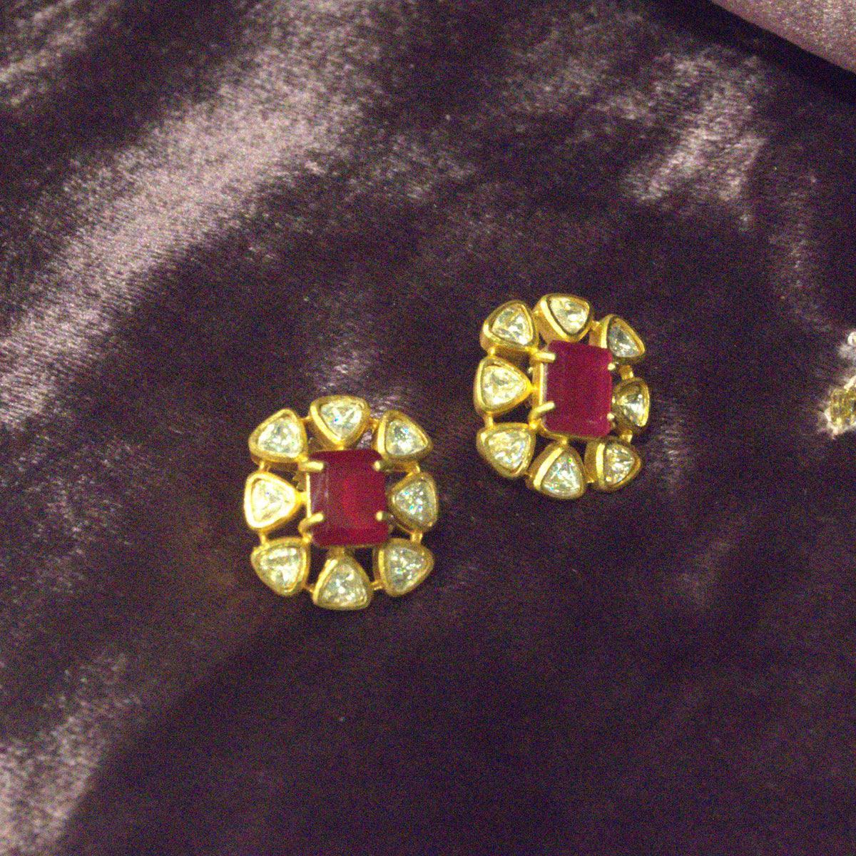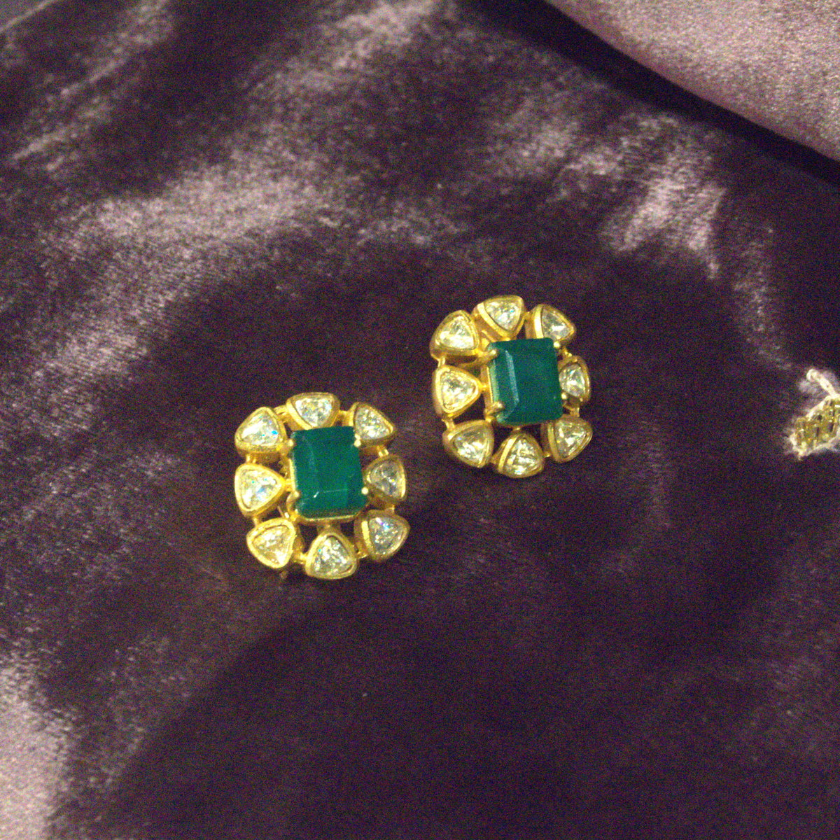 - Moissanite polki, semi precious stones, 92.5 silver and gold plated.