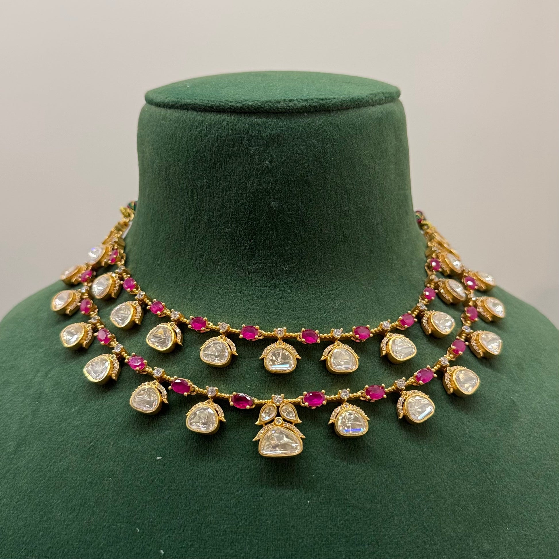 - Glass Moissanite Polki, semi precious stone, 92.5 silver and gold plated.
