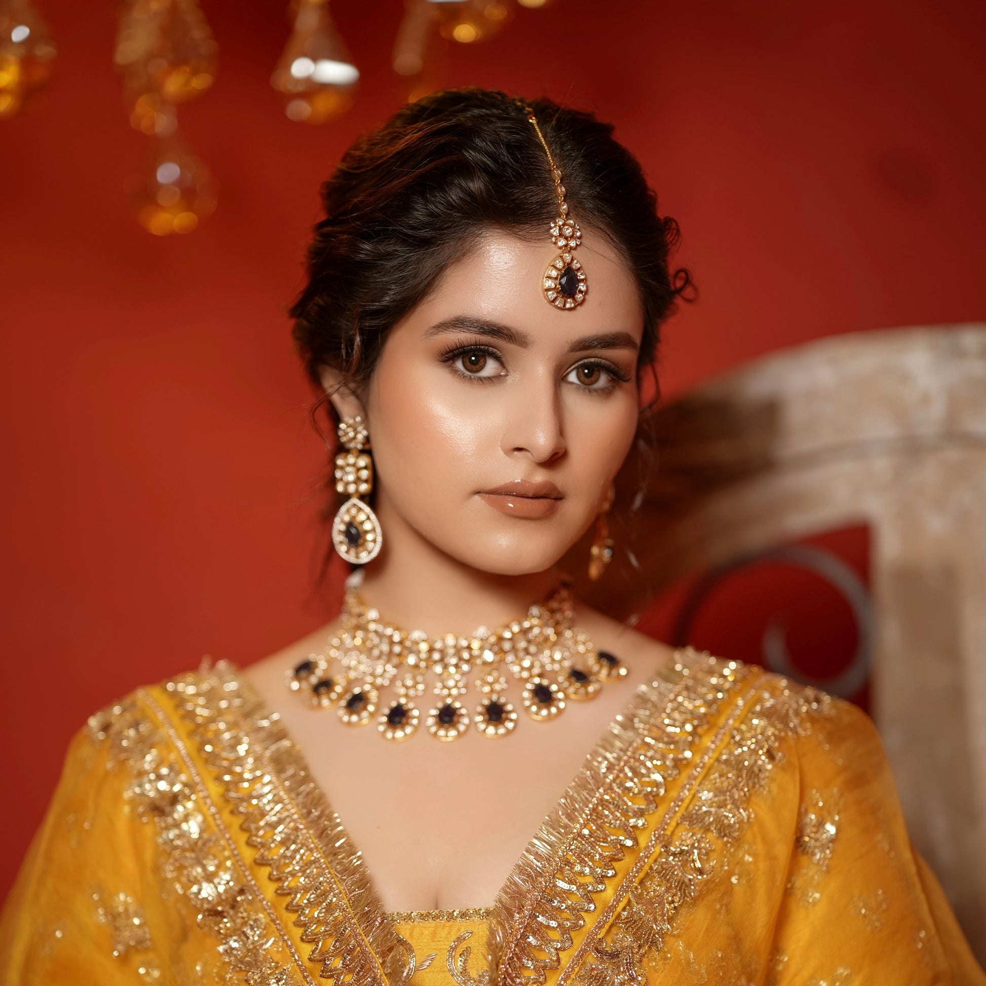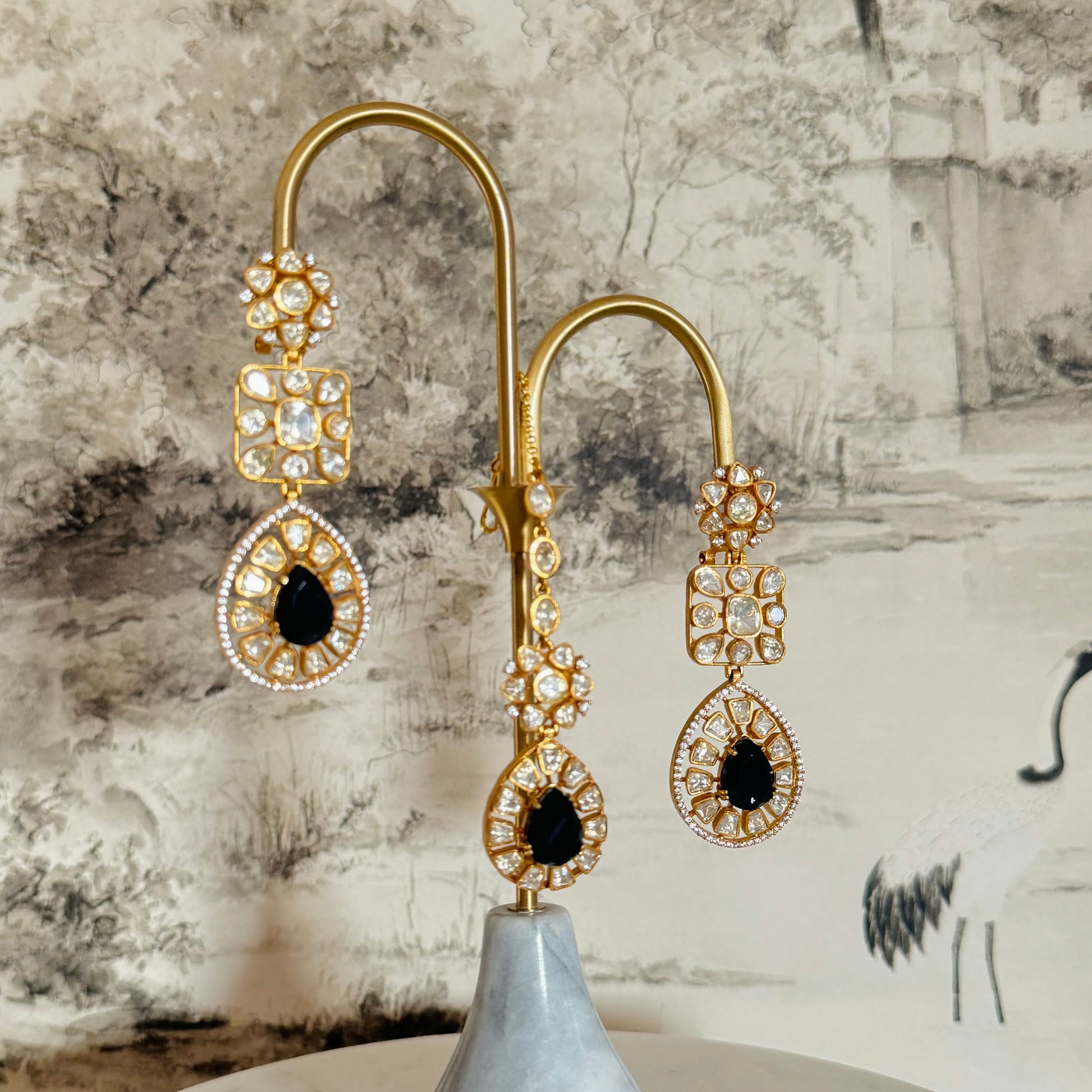 - Glass Moissanite Polki, 92.5 silver, doublet sapphire stones and gold plated.