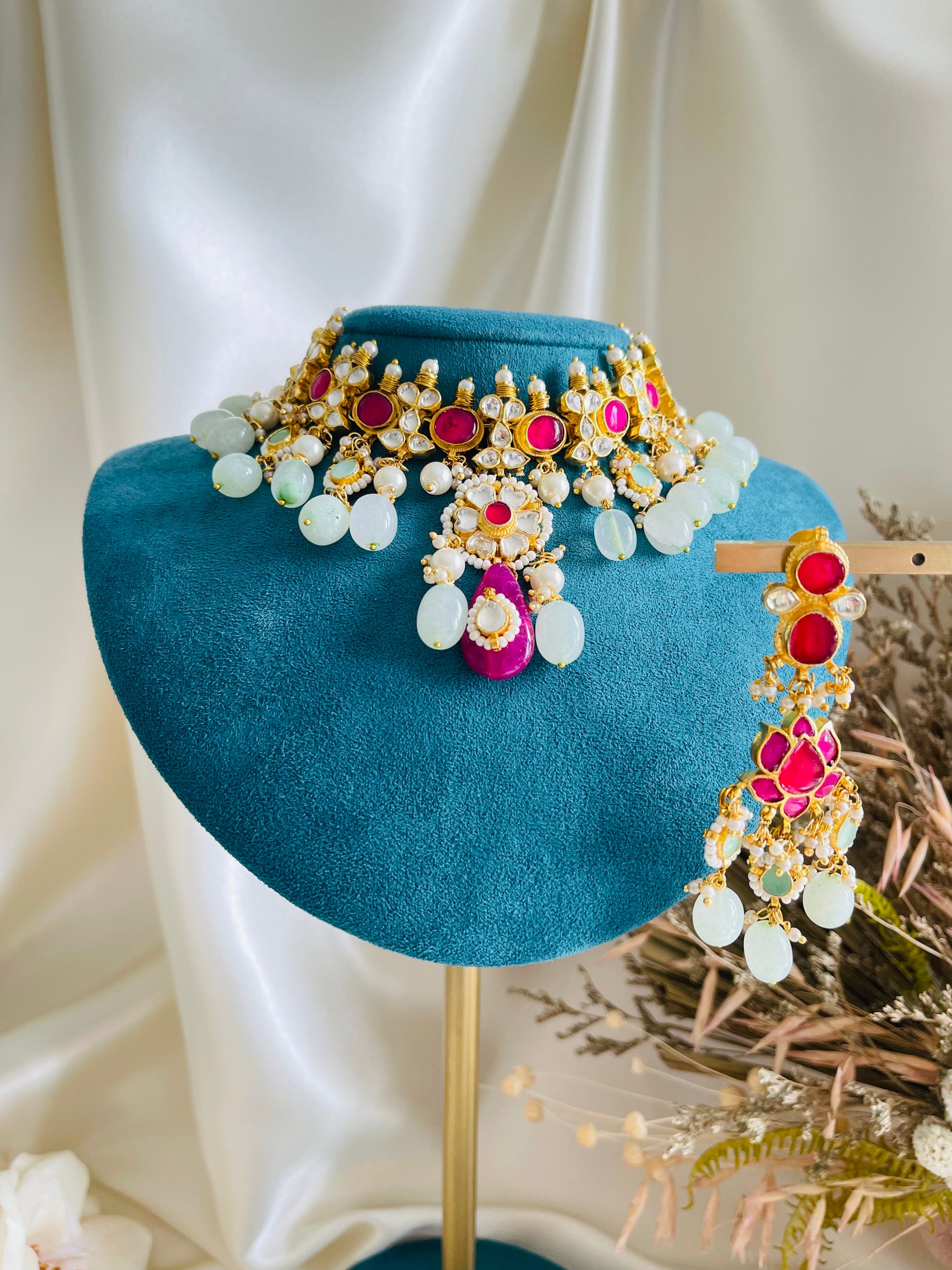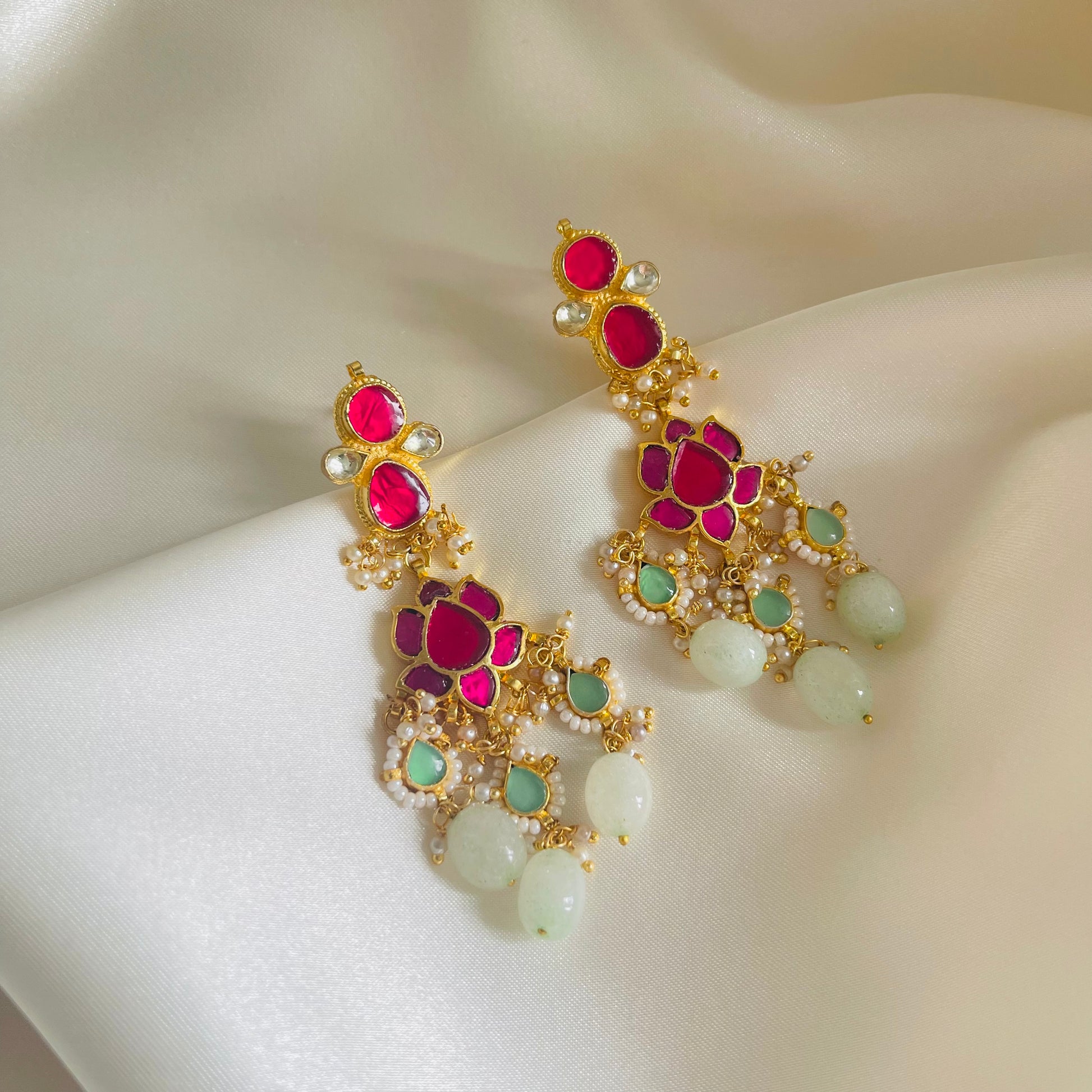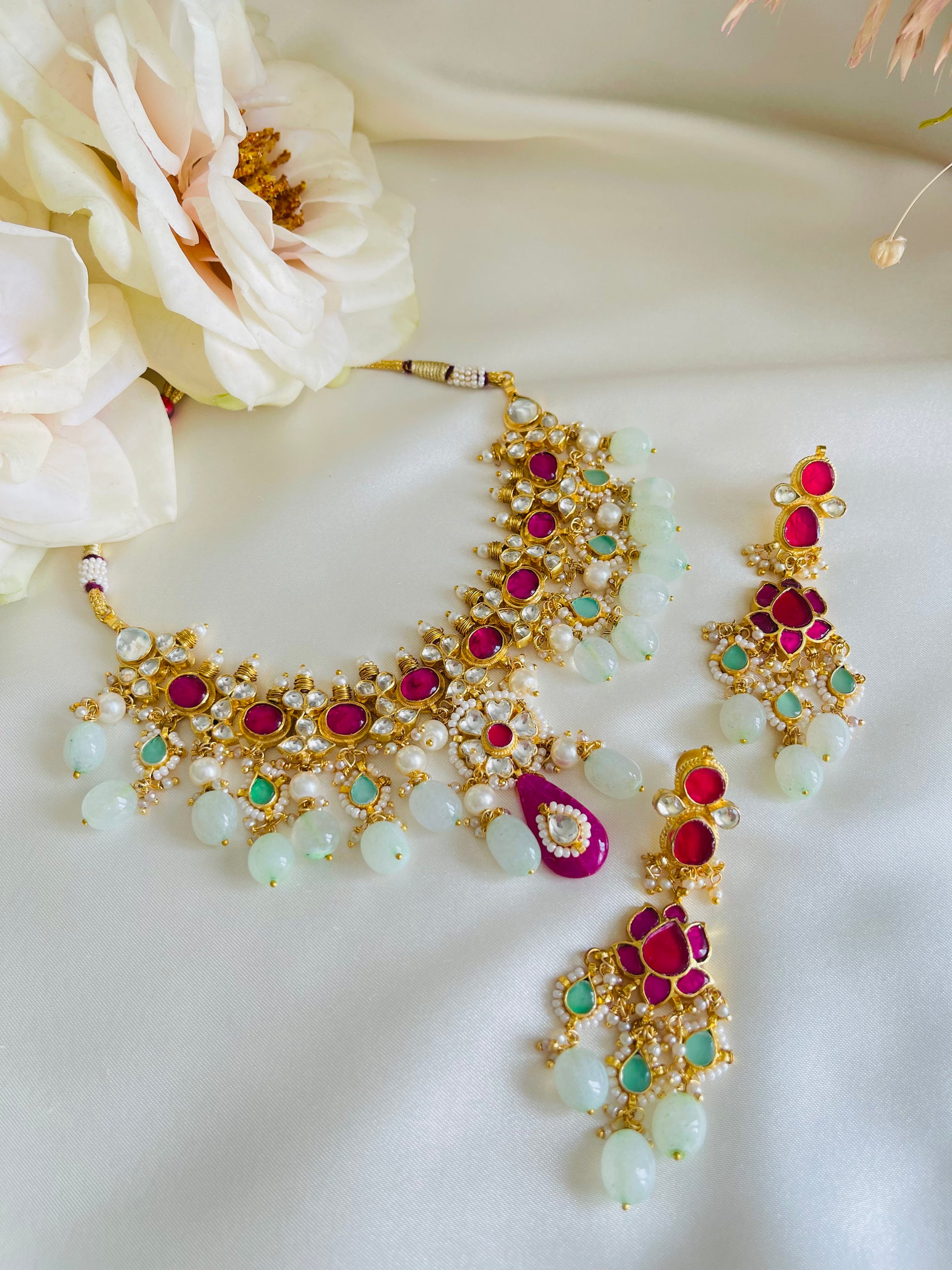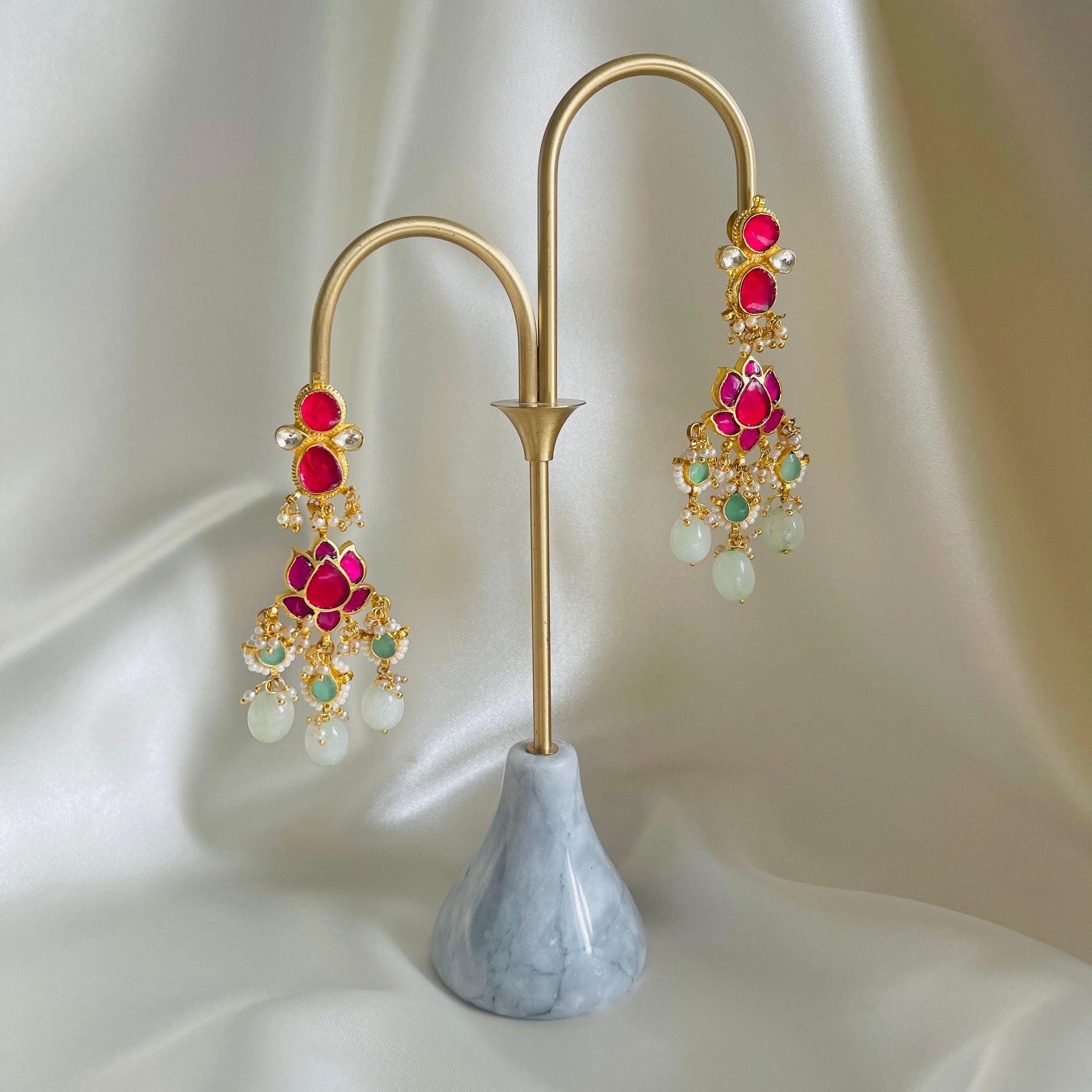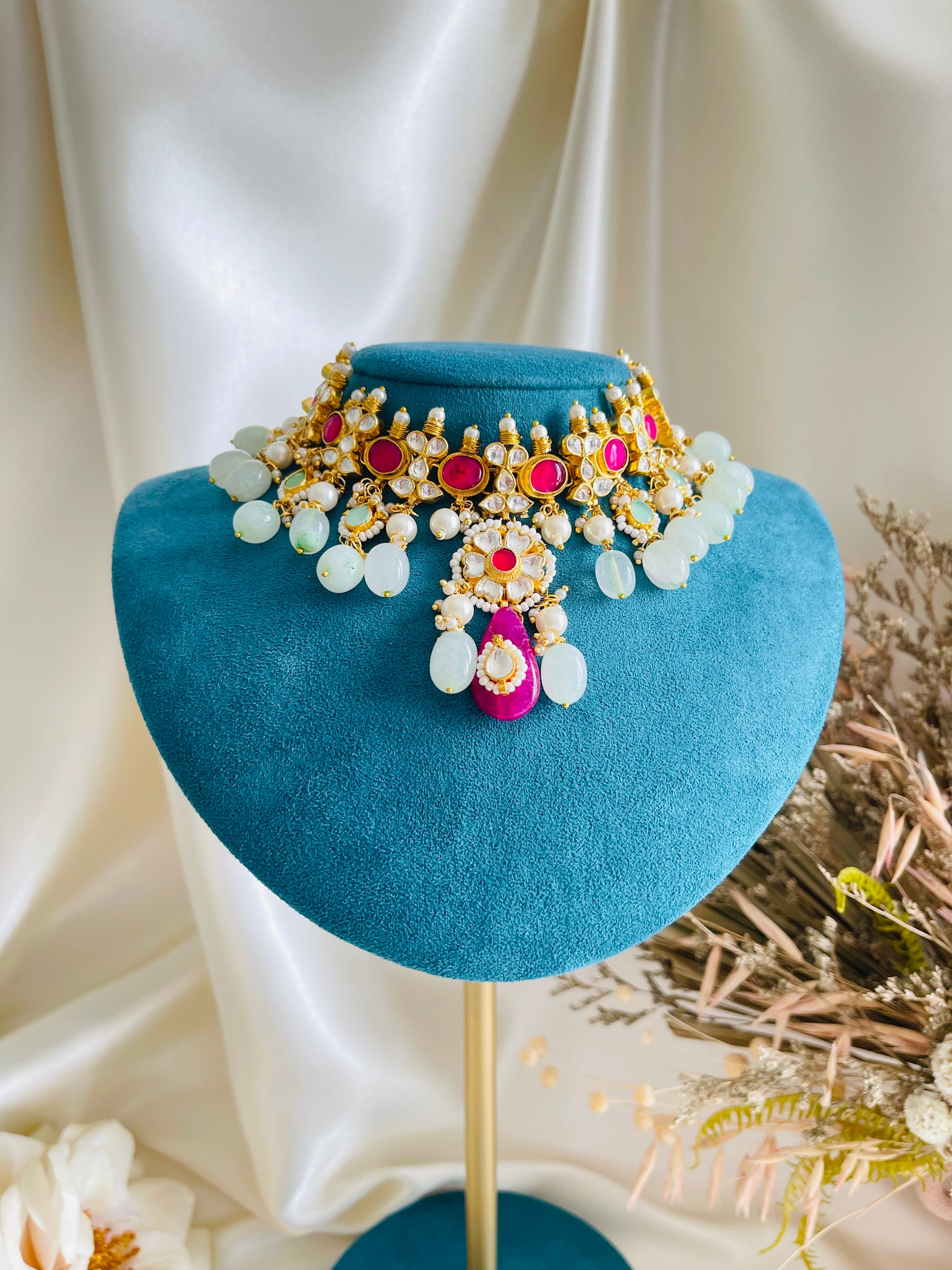 - Paachi kundan, faux beads, meenakari work and gold-plated.