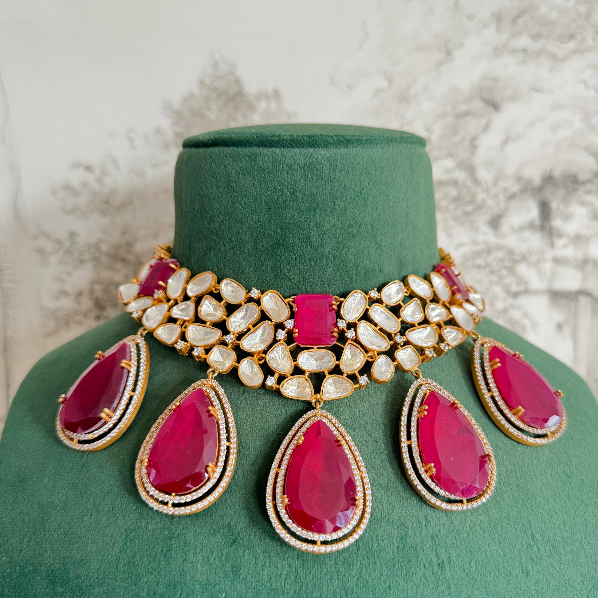 - Glass Moissanite Polki, semi precious stone, 92.5 silver and gold plated.