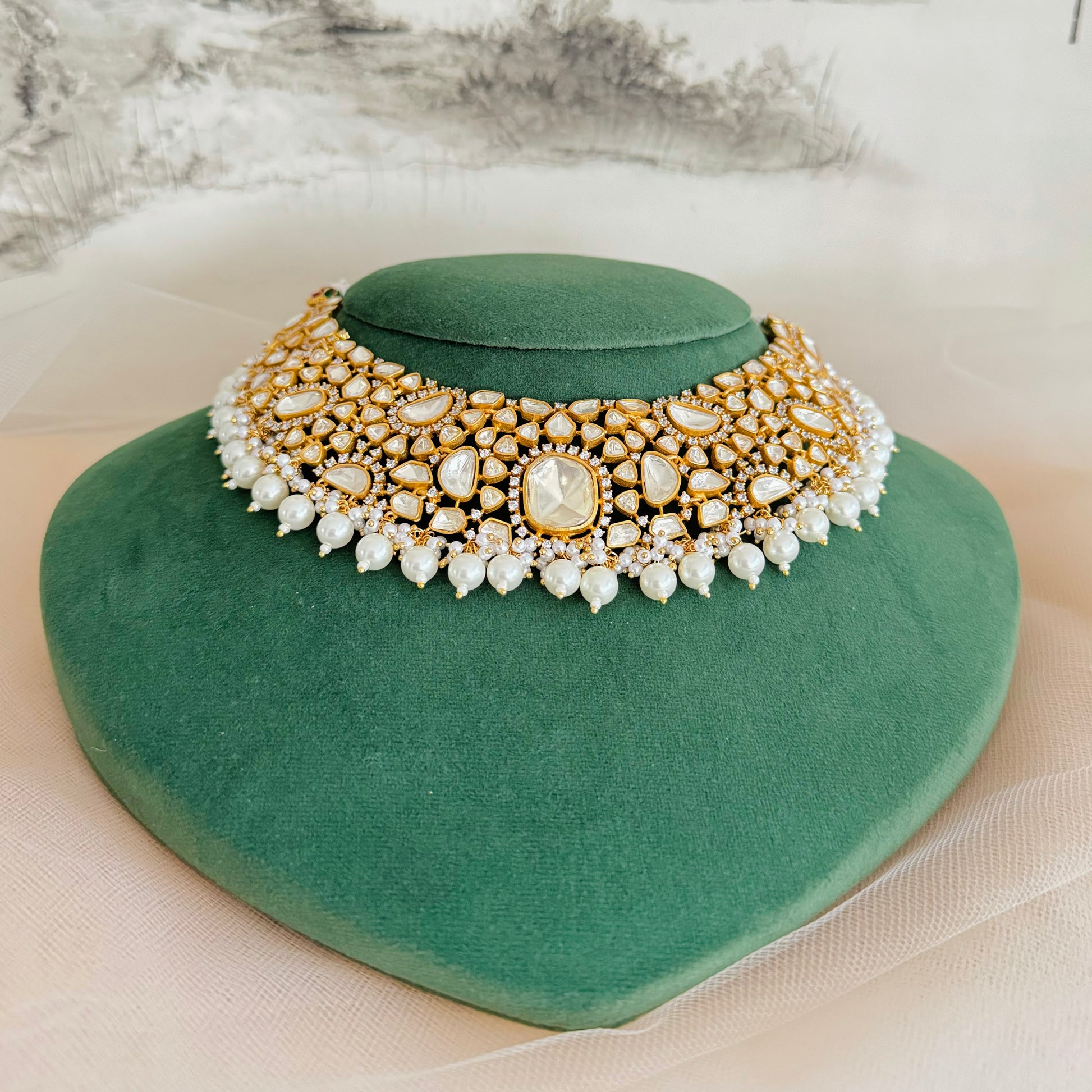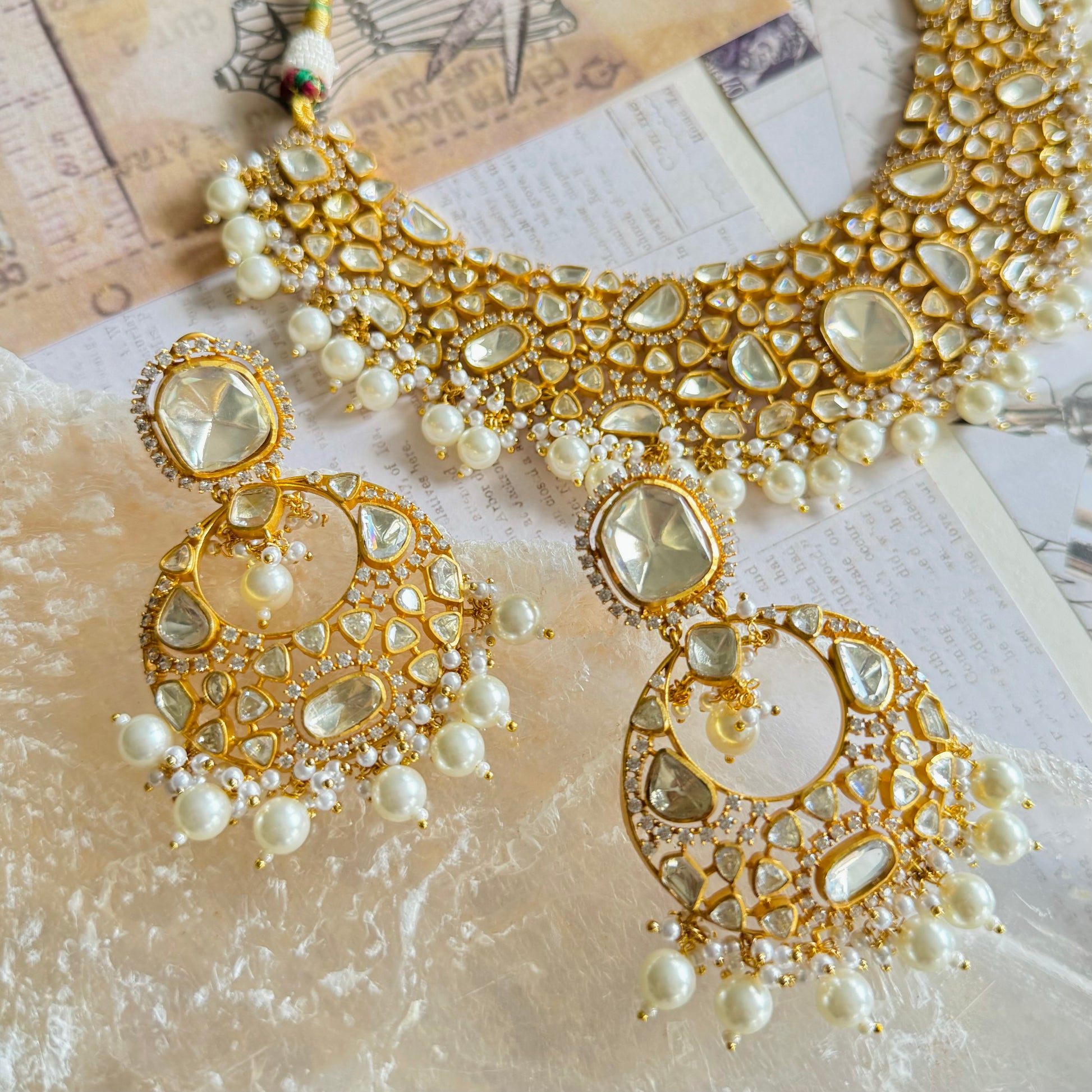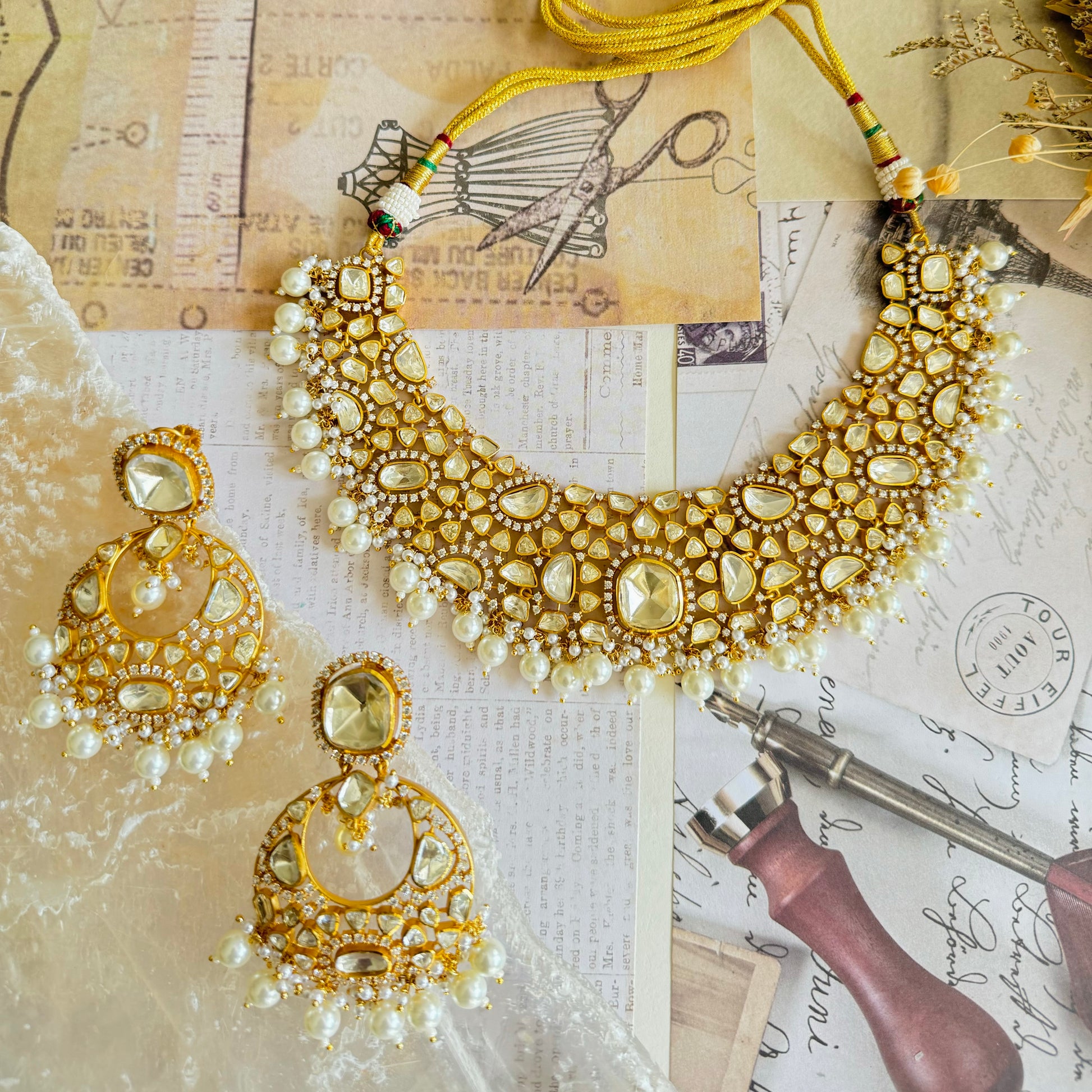- Glass Moissanite Polki, semi precious stone, 92.5 silver and gold plated.