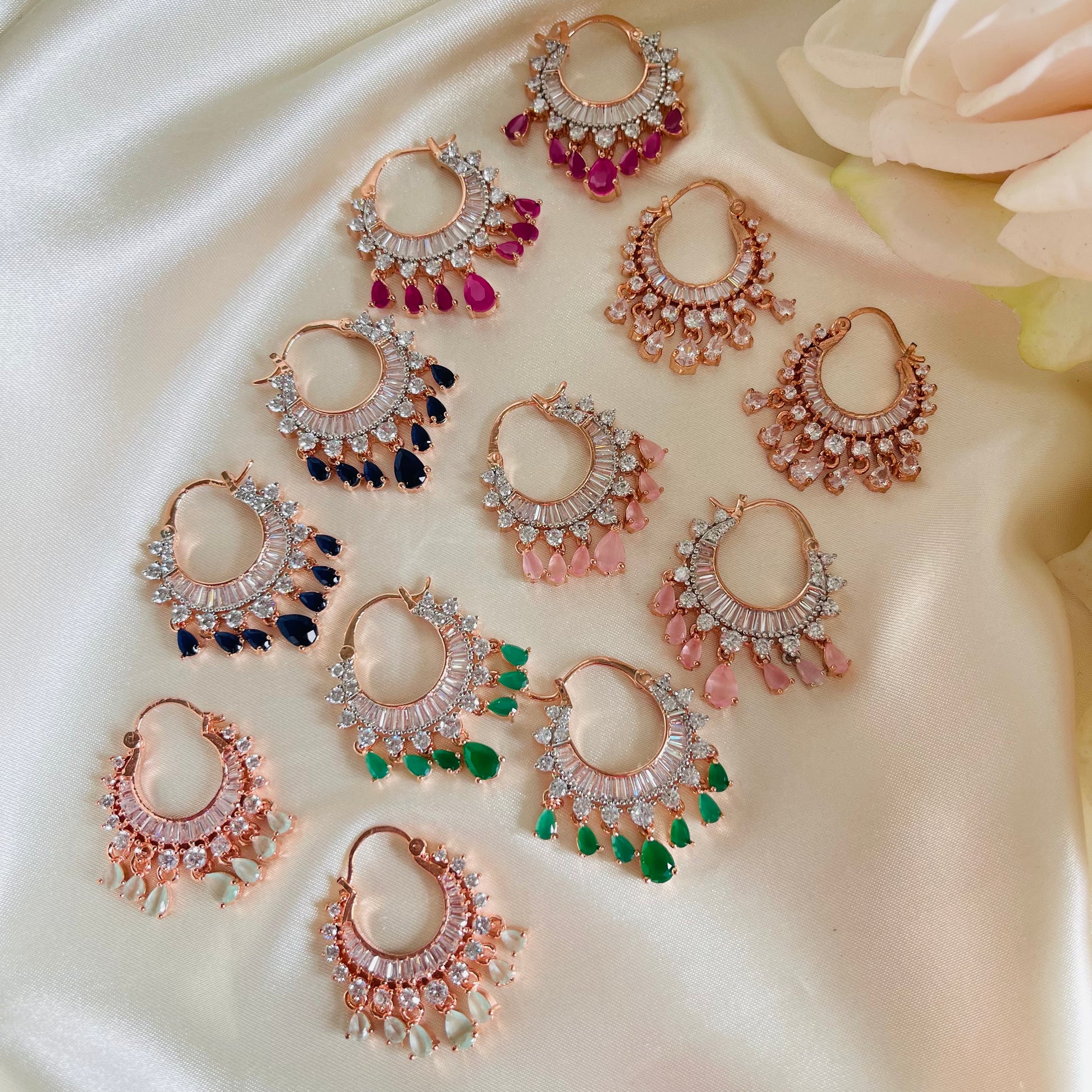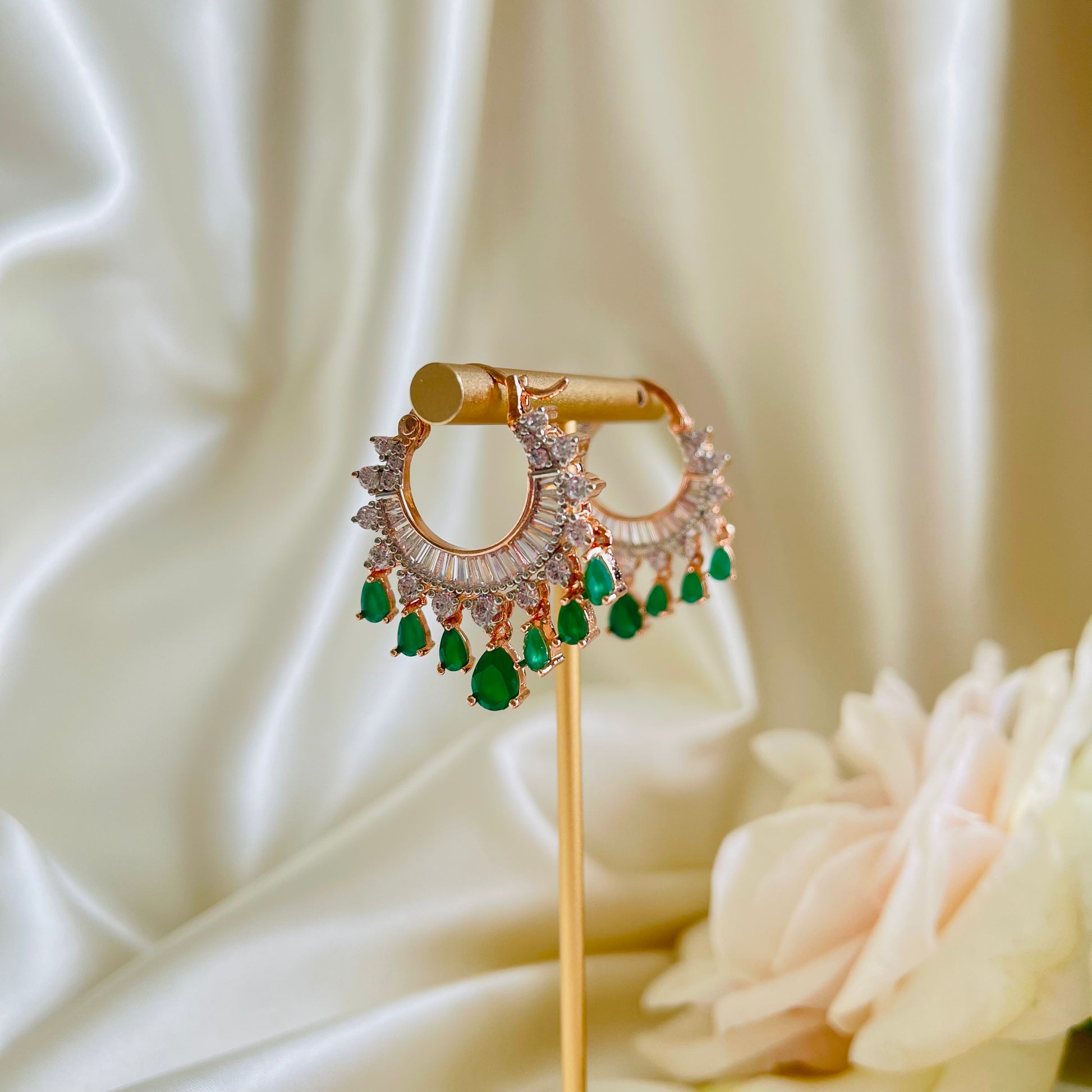 - American diamond, brass based, rose gold finish with gold foil all around.