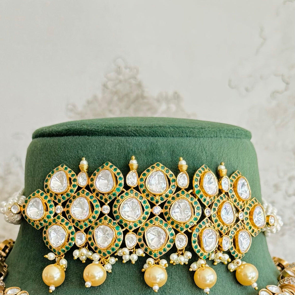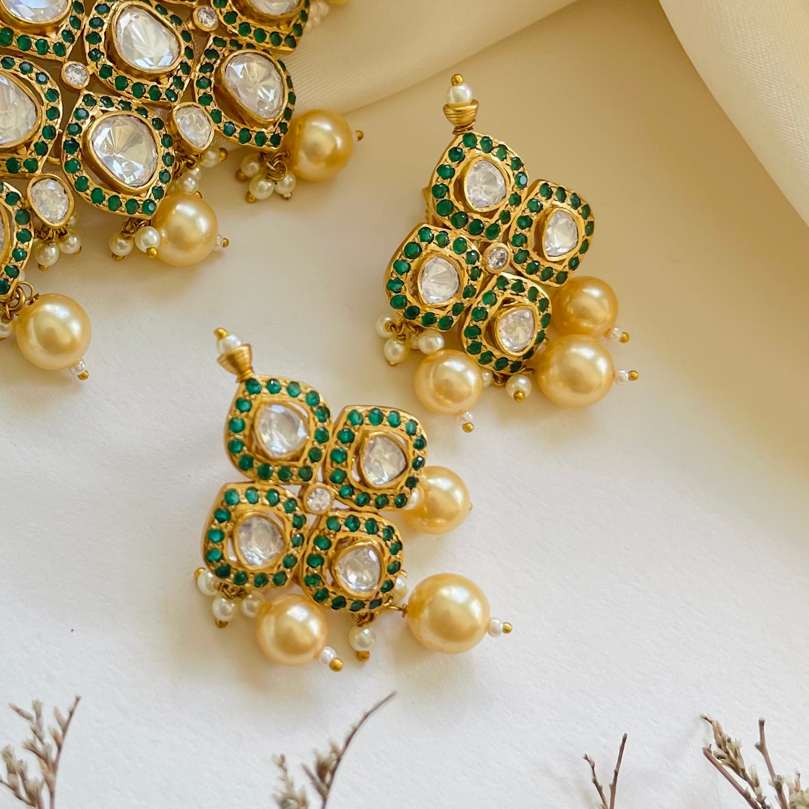 - Moissanite polki, semi precious stones and gold-plated.