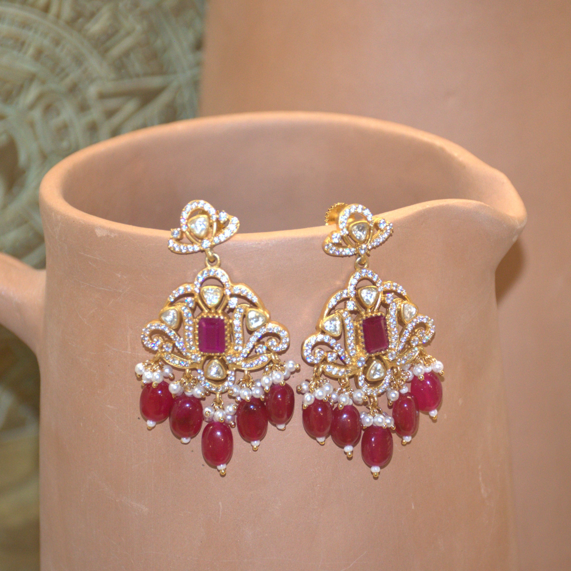 - Glass Moissanite Polki, semi precious stone, 92.5 silver and gold plated.