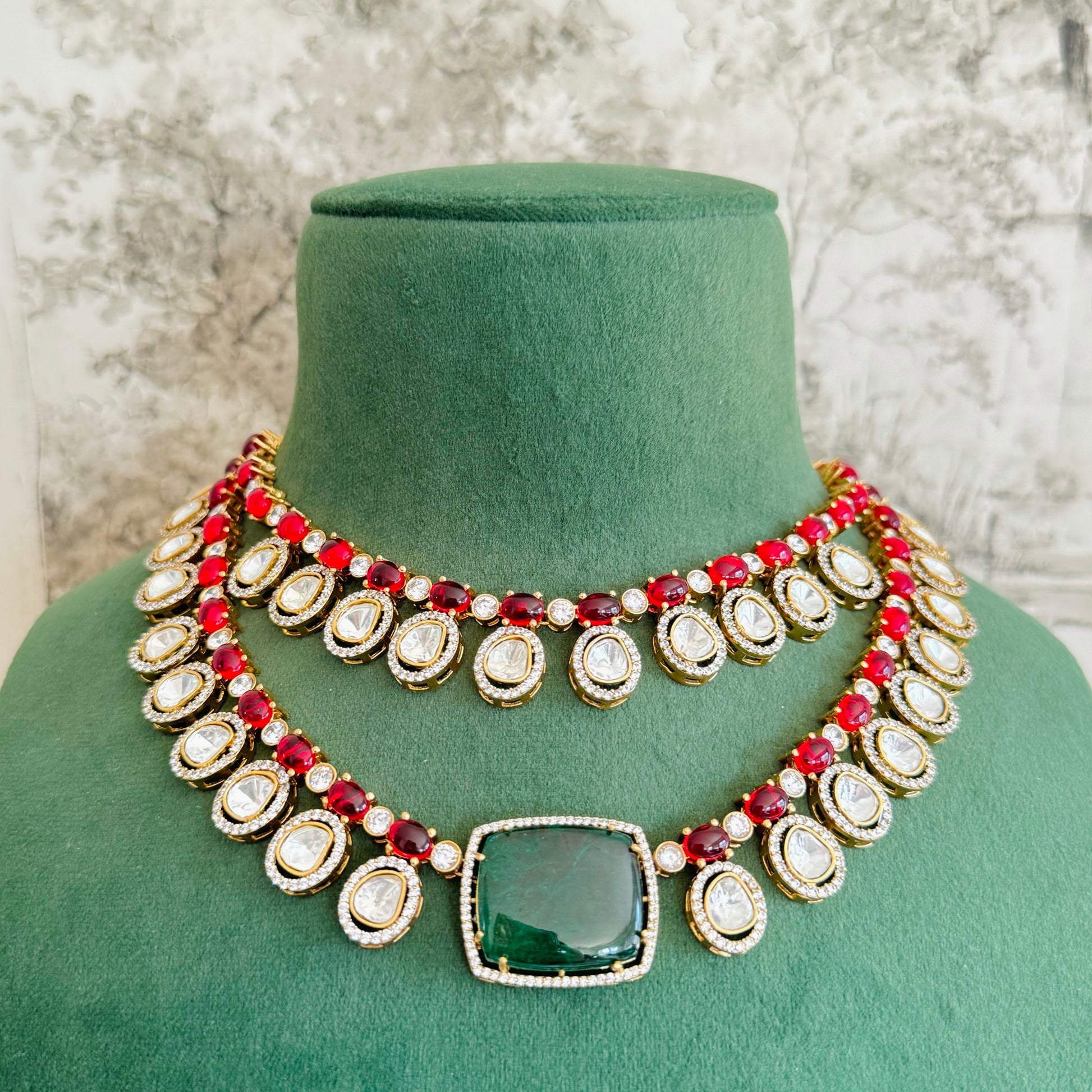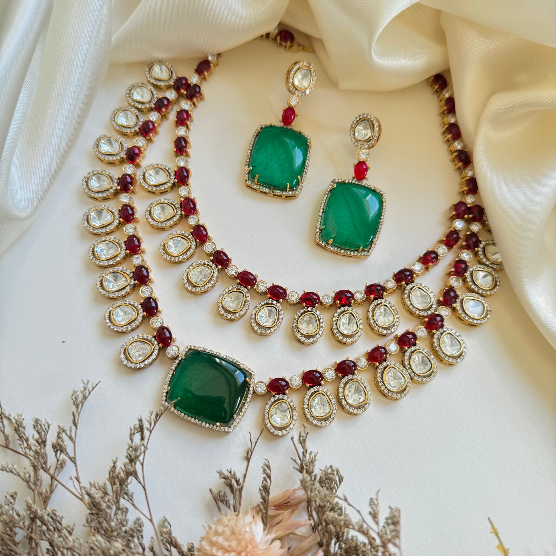 - Moissanite polki, american diamond, semi precious stones and gold-plated.