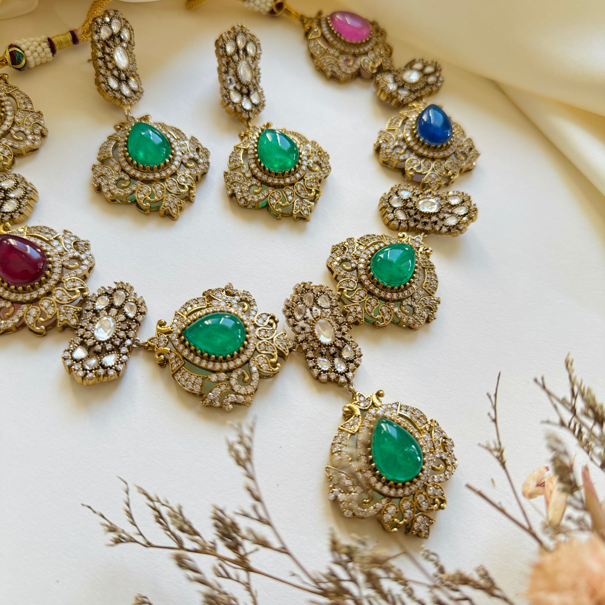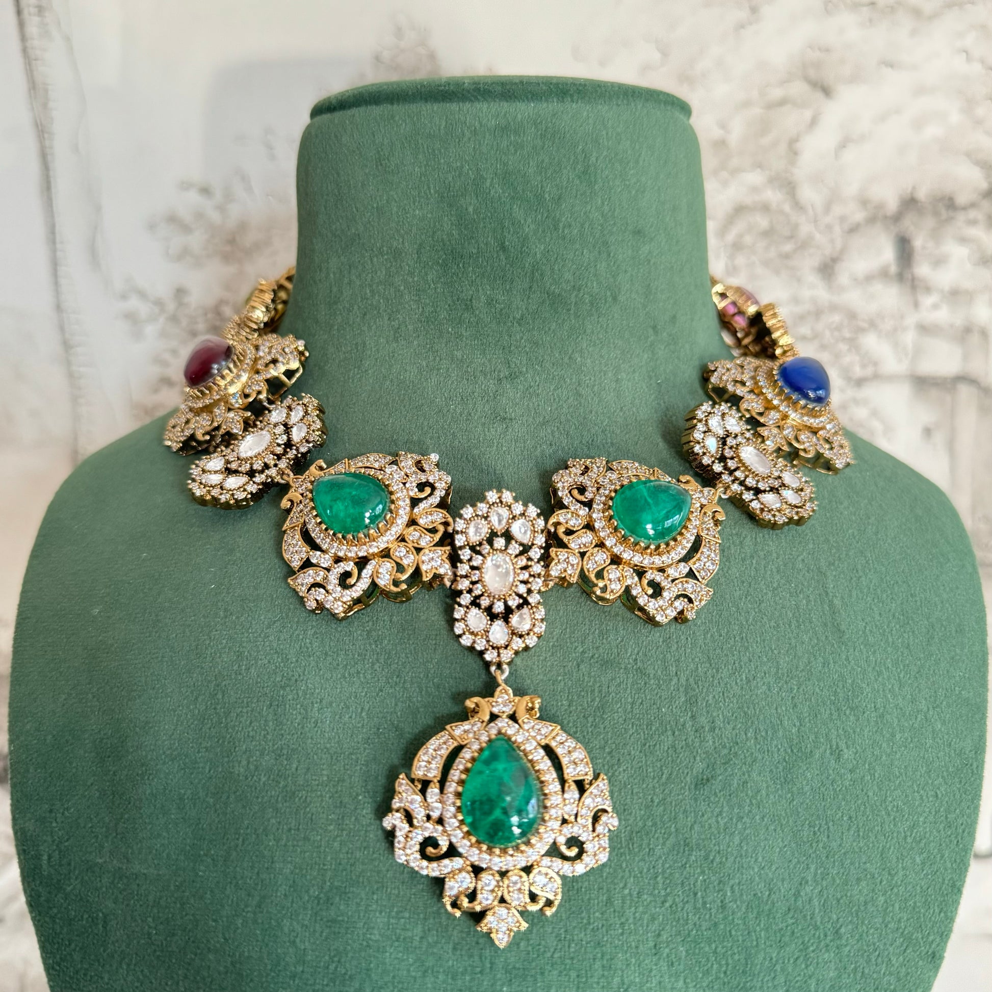 - Artificial kundan, american diamond, doublet stones and gold foil all around.