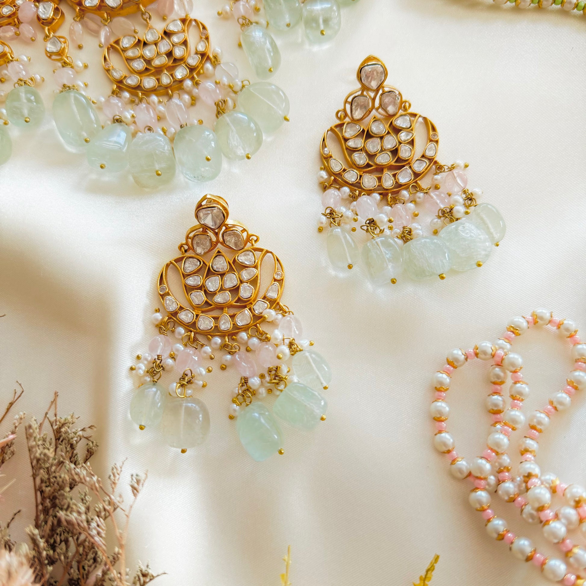- Glass Moissanite Polki, 92.5 silver and gold plated.