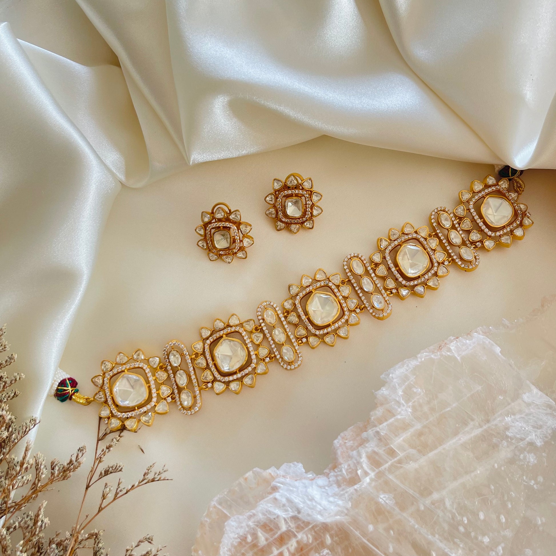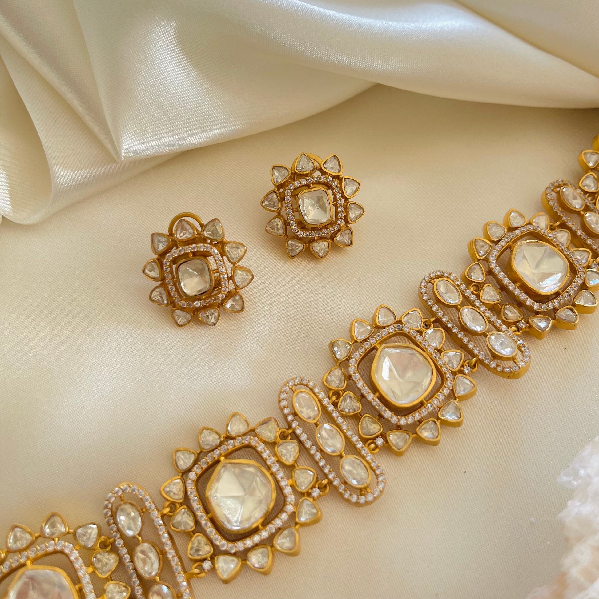 - Glass Moissanite Polki, 92.5 silver and gold plated.