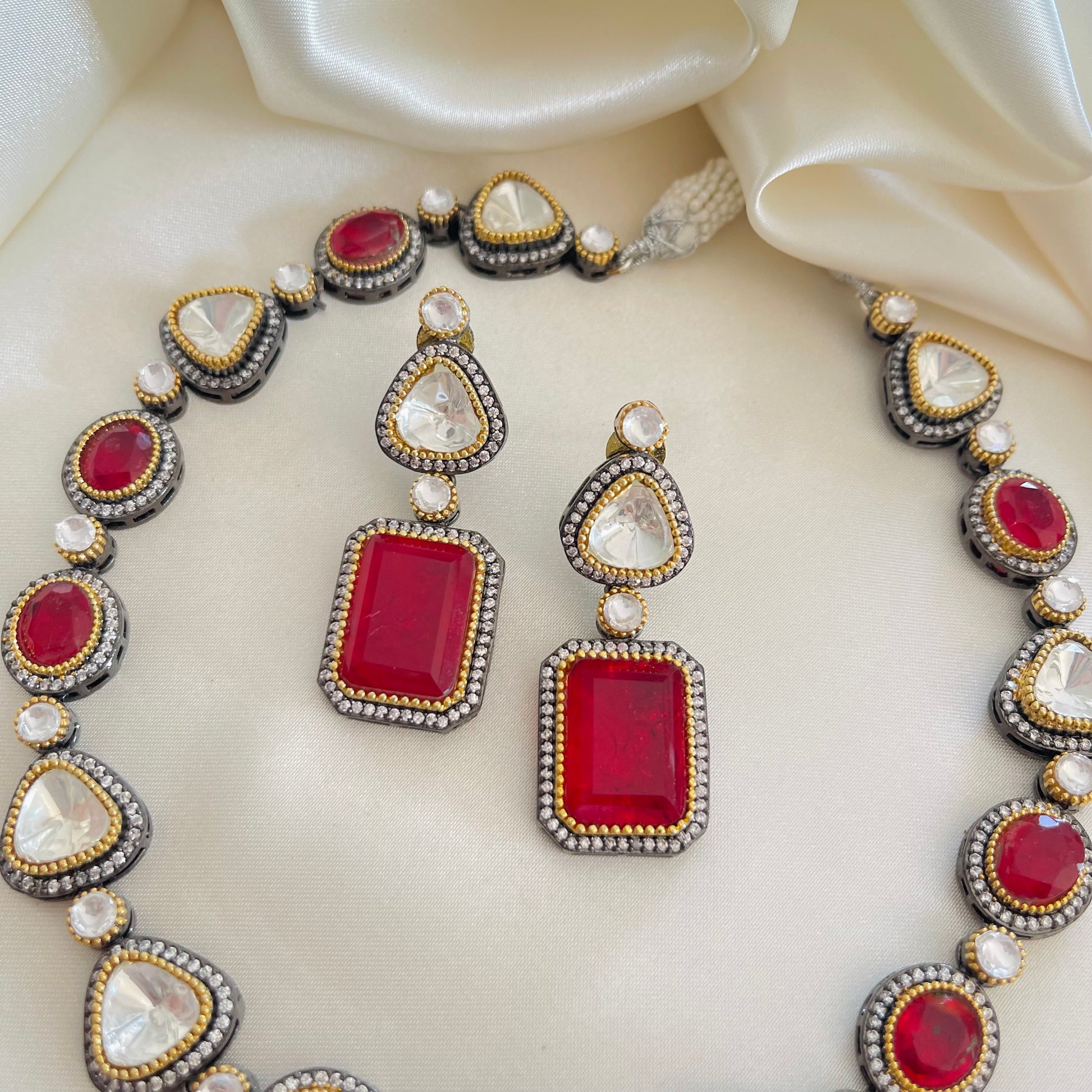 - Moissanite Polki, doublet stone, american diamond, oxidized finish and gold plated.