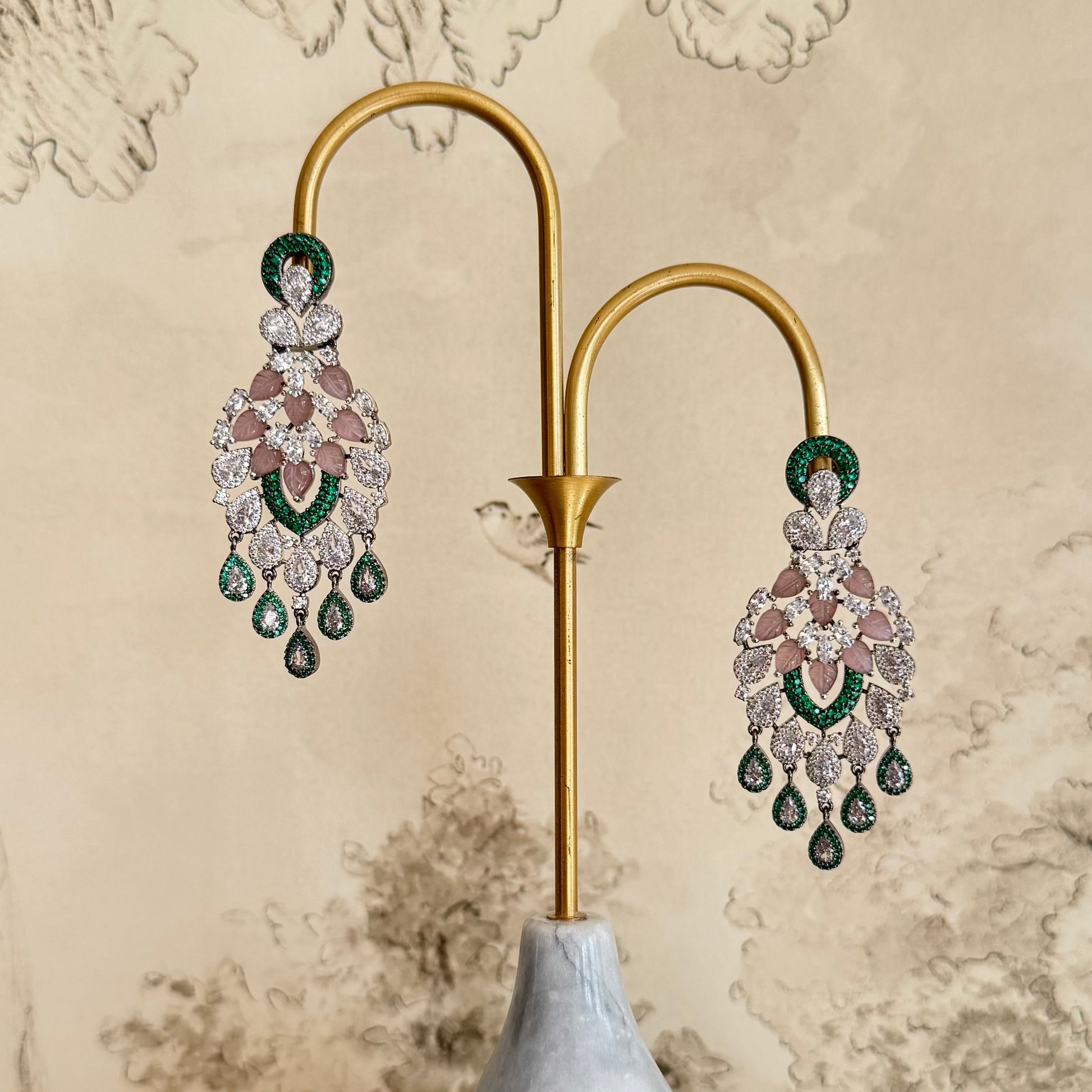 - American diamond, semi- precious stones, carved dyed stones with gold foil all around.